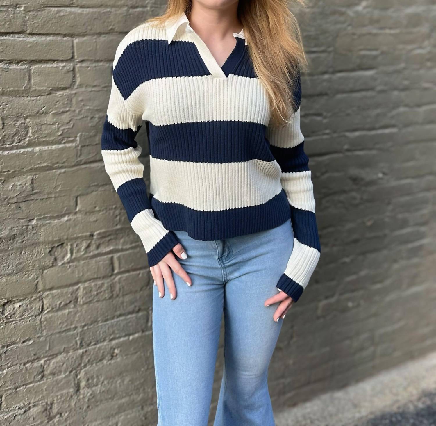 Skies Are Blue - Collared Stripe Sweater