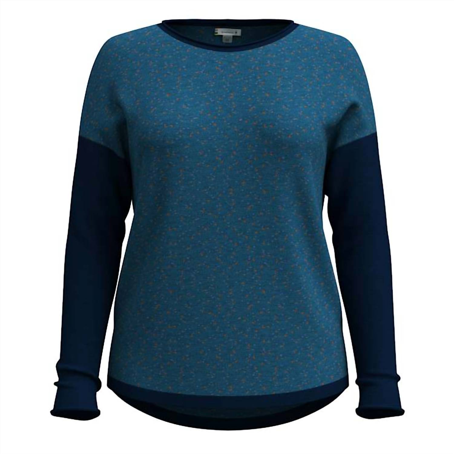 Experience the perfect blend of comfort and style with this trendy crew neck sweater, designed to effortlessly elevate your wardrobe. Pair it with your favorite denim and loafers for the perfect look. This lightweight knit sweater features long drop shoulder sleeves and a color blocking style detail, adding a touch of flair to its regular fit. The rolled edge at the collar and sleeve openings gives it a unique finish. Closure is a convenient pull-on style, and it's easy to care for with machine wash instructions. Main Body: 55% Polyester, 30% Merino Wool, 15% Nylon. Back Body: 52% Polyester, 30% Merino Wool, 18% Nylon.