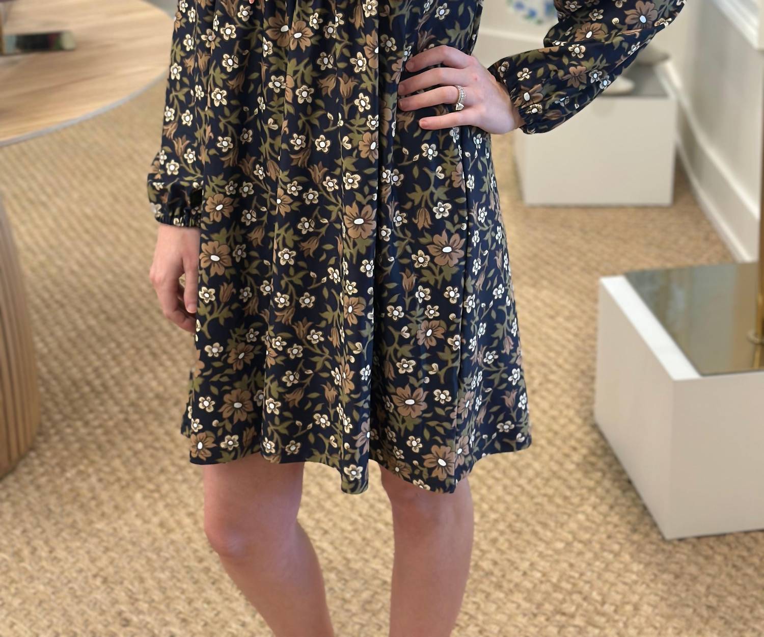 The perfect mini dress for those warmer months. Elevate your holiday wardrobe with the Bonnie Dress by SMITH & QUINN, adorned in a charming dried petals floral pattern. This women's A-line mini dress features a flattering V-neck and three-quarter sleeves. Crafted from Smith & Quinn’s signature Italian matte stretch fabric, the composition includes 95% cotton and 5% elastane. Designed with a convenient pull-on closure, this dress is wrinkle-resistant, machine washable, and should be line dried, making it perfect for a quiet luxury look this spring.