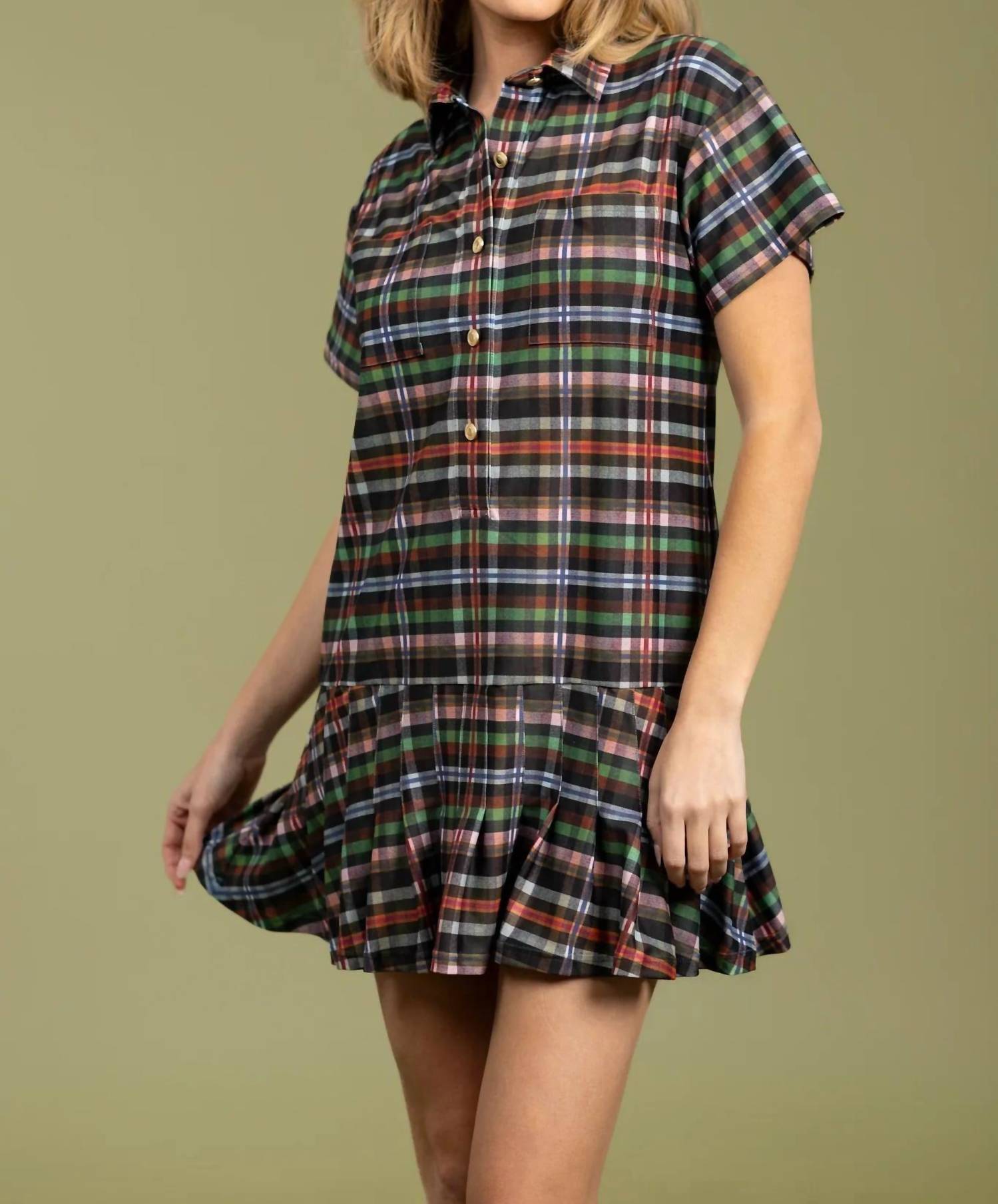 A short and breezy dress for those warmer days. Introducing the Women's Aspen Dress by Smith & Quinn, a vibrant multicolor piece perfect for your vacation wardrobe. This mini dress features an A-line silhouette with short sleeves and a stylish collar neckline. Designed with a maximalist pattern, it offers a button closure for easy wear.