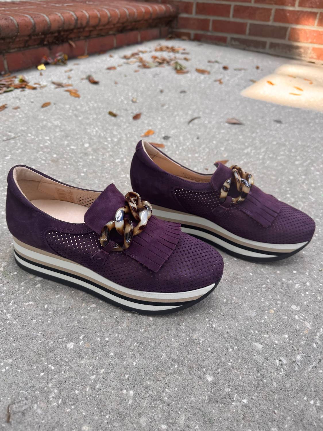 A preppy yet feminine take on the classic loafer. Experience the perfect blend of style and comfort with the Women's Cadie Platform Loafer by Softwaves in Prugna Velour. Crafted with care using premium chrome-free leather in Portugal, these loafers boast a round toe and a low platform heel, providing both durability and eco-conscious wear. Ideal for a spring dinner party or streetwear trend, the removable arch support offers customized comfort and the ultra-comfortable wedge sole ensures all-day ease. Available in a wide range of sizes, it is recommended to size up by half for the ideal fit.