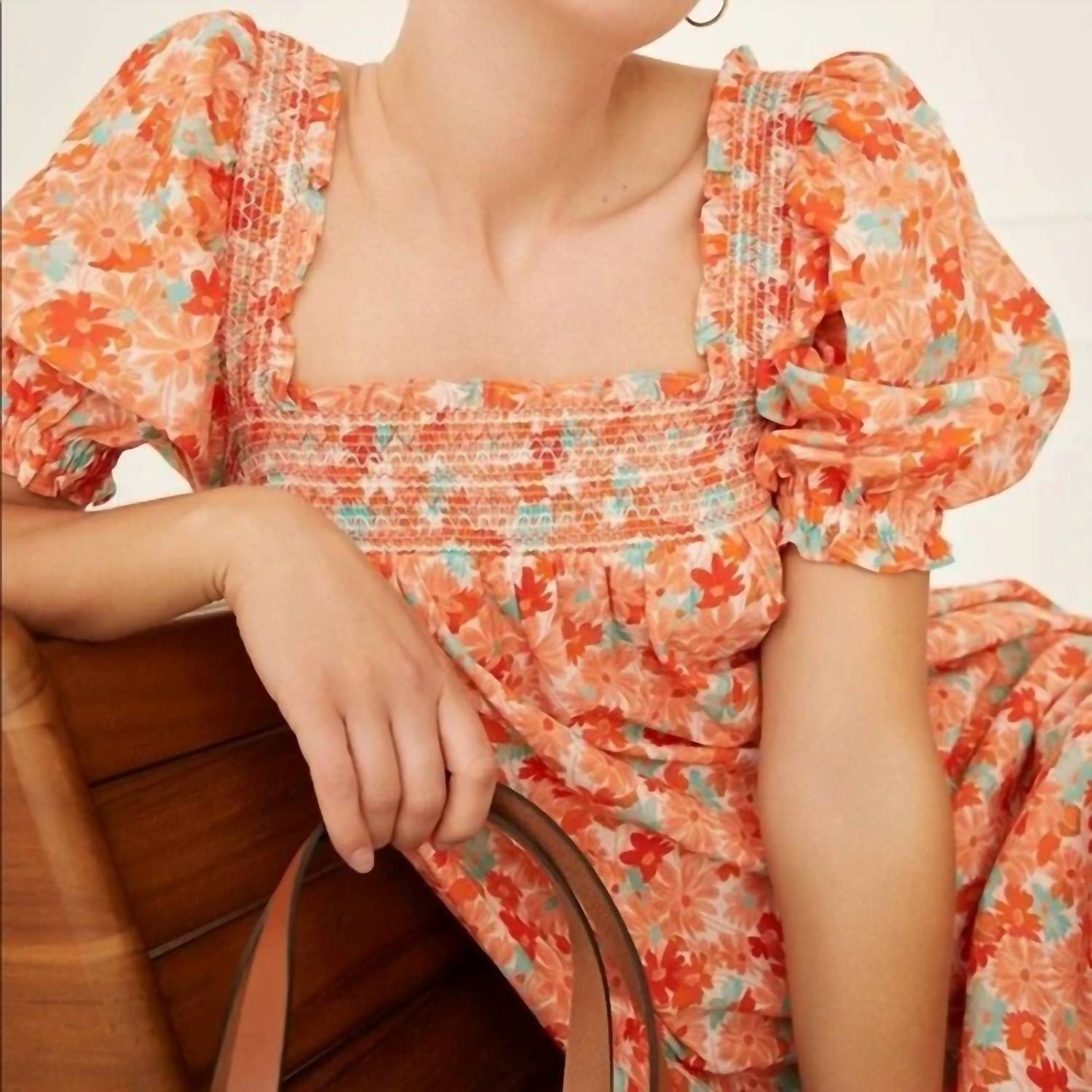 The kind of easy and flattering dress you'll be reaching for all season long. Introducing the Floral Smocked Puff Shoulder Mini Dress by SOMETHING NAVY, an ideal choice for spring with its vibrant Orange Combo and floral pattern. This 100% Cotton mini dress features short puff sleeves and a chic square neckline with a sheath silhouette. Its pull-on closure and smocked details along the neckline and sleeves add a touch of elegance to the minimalist design. Enjoy easy styling without the fuss, perfect for any sunny day out.