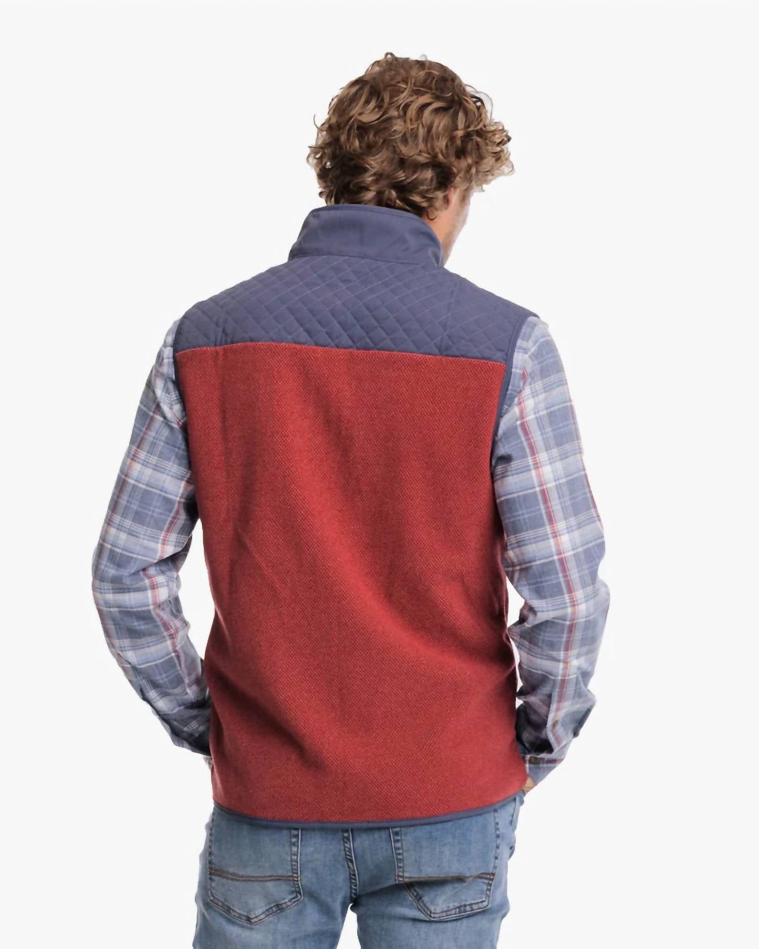 This full-zip vest is made from 100% polyester and features a light quilted construction for balanced insulation.The design uses a two-color contrast layout and includes a mock neck for added protection against the elements.For utility, the vest is equipped with zippered welt pockets to keep items secure and a flexible fabric build that allows for a wide range of motion. Engineered as a durable outer layer, this piece focuses on a clean fit and functional warmth, making it a reliable staple for outdoor use or layering.