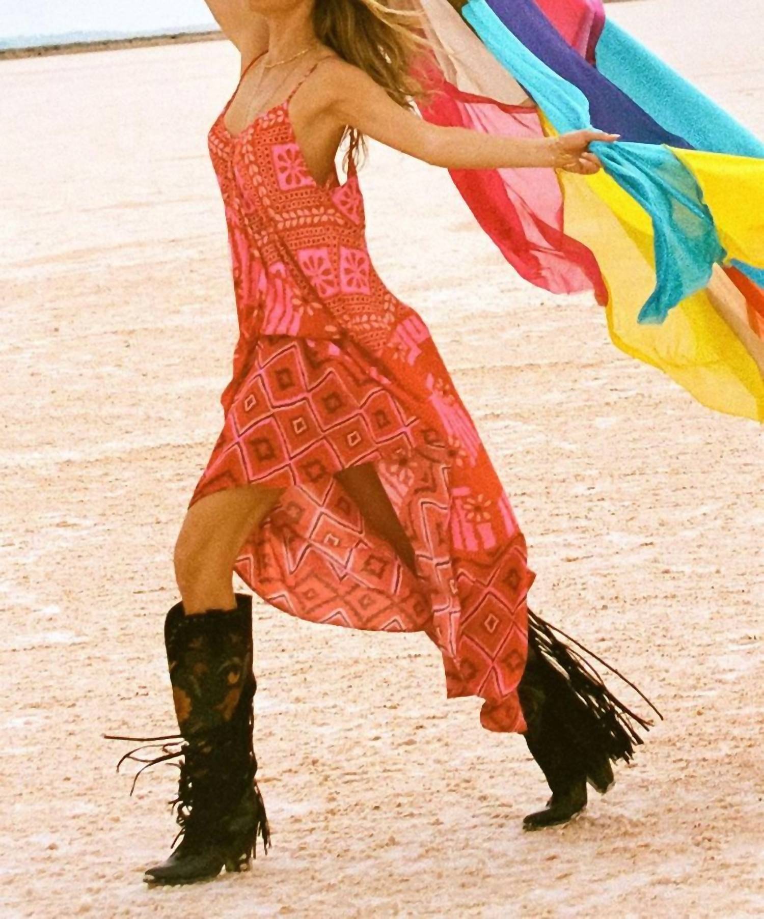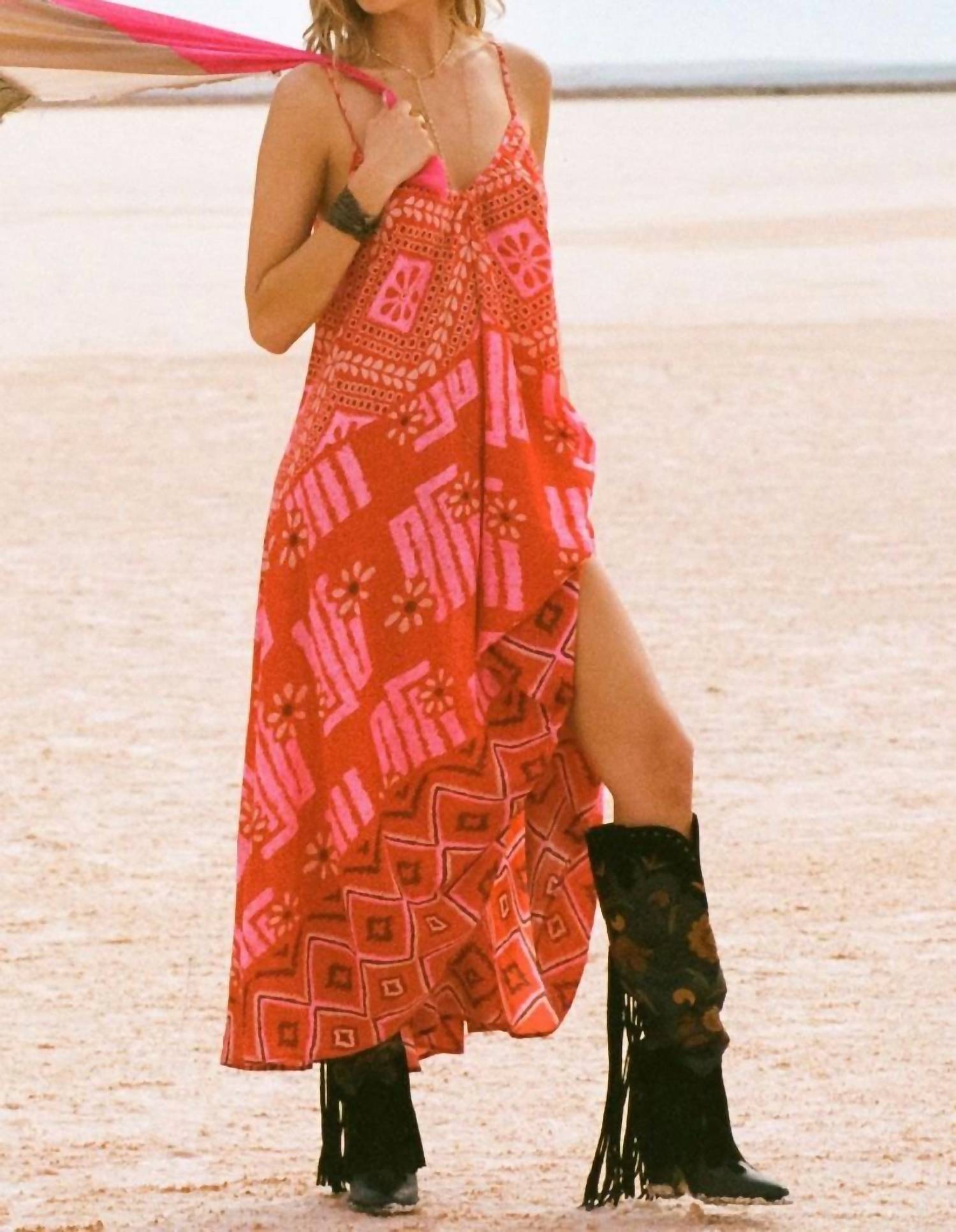 Who doesn't love a good maxi dress? This one you'll be reaching for season after season. Elevate your wardrobe with the SPELL Libertine Strappy Maxi Dress, a striking statement piece in vibrant cayenne. This dress features delicate spaghetti straps and a flowing maxi silhouette, perfect for adding a touch of boho chic to any summer occasion. Made from 100% Lenzingâ„¢ Ecoveroâ„¢ Viscose, its slip silhouette and bold floral pattern define effortless style. Closure: Pull on. Care: Hand wash and line dry.