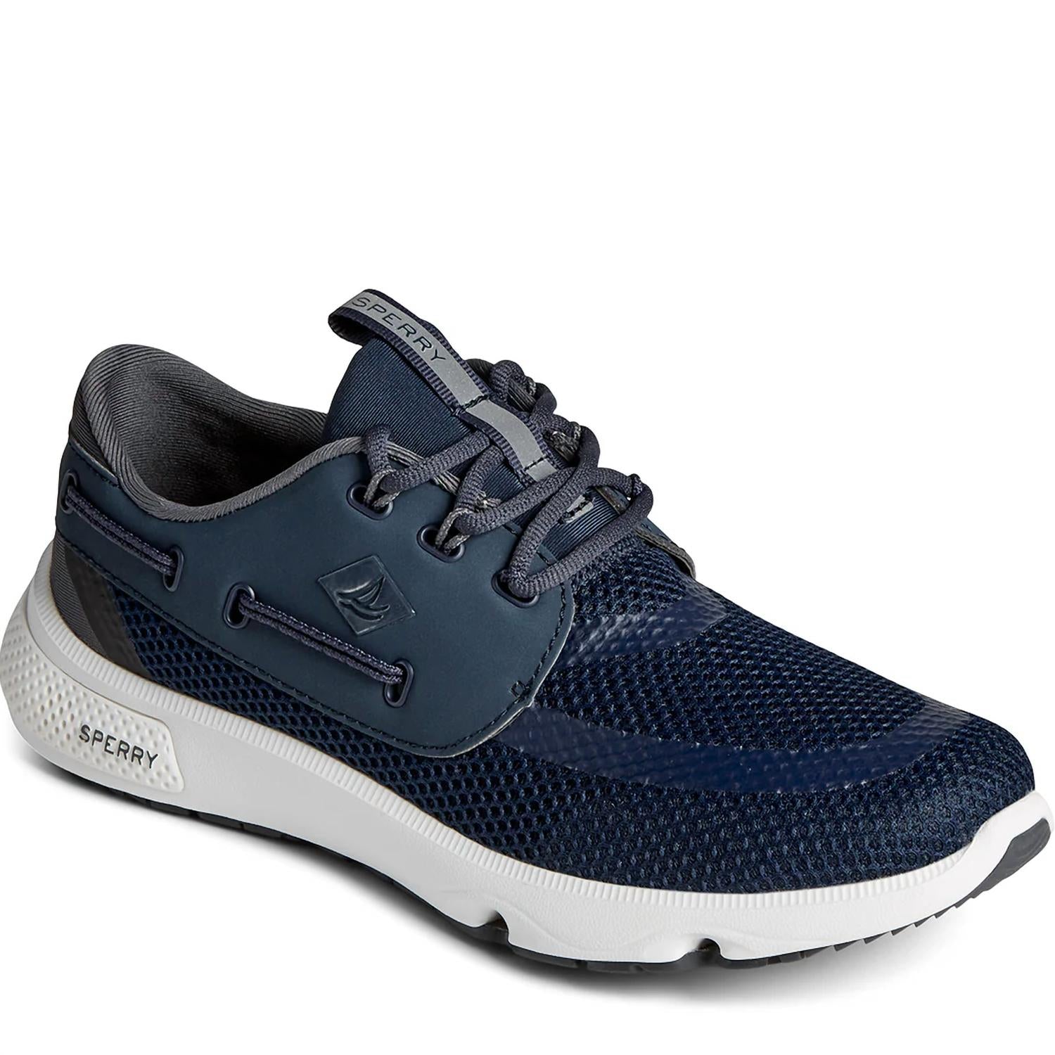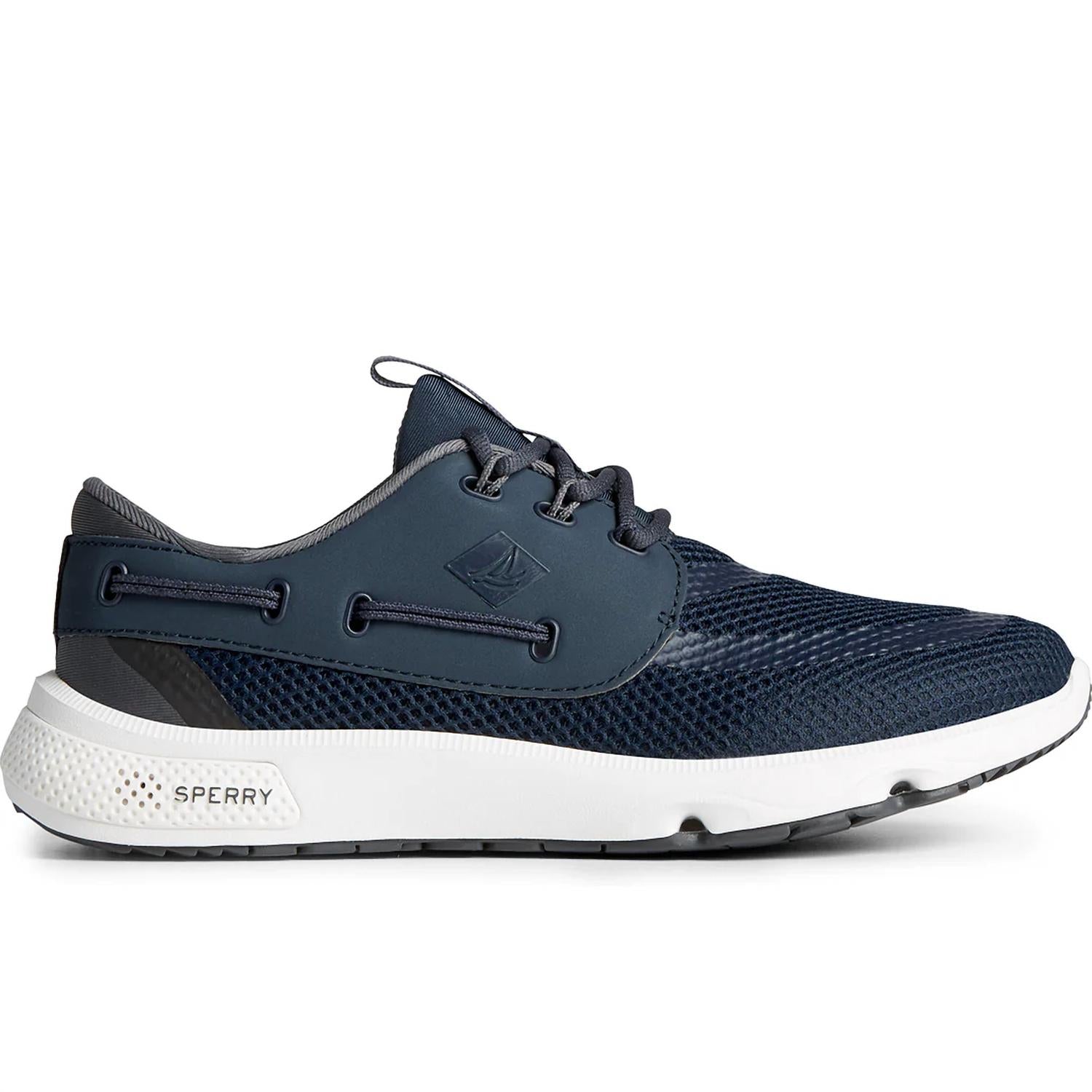 Get your daily steps in with these adorable sneakers. Step into adventure with the Women's 7 Seas 3-eye Sneaker by Sperry, a perfect blend of style and functionality. Designed in navy, this athleisure-inspired sneaker features a medium width for comfort and a flat heel that complements round-toe styling. Built with a water-shredding, quick-drying hydrophobic mesh upper and draining ports, it's ideal for summer fitness workouts. This sneaker is engineered for adult women who embrace an active lifestyle.