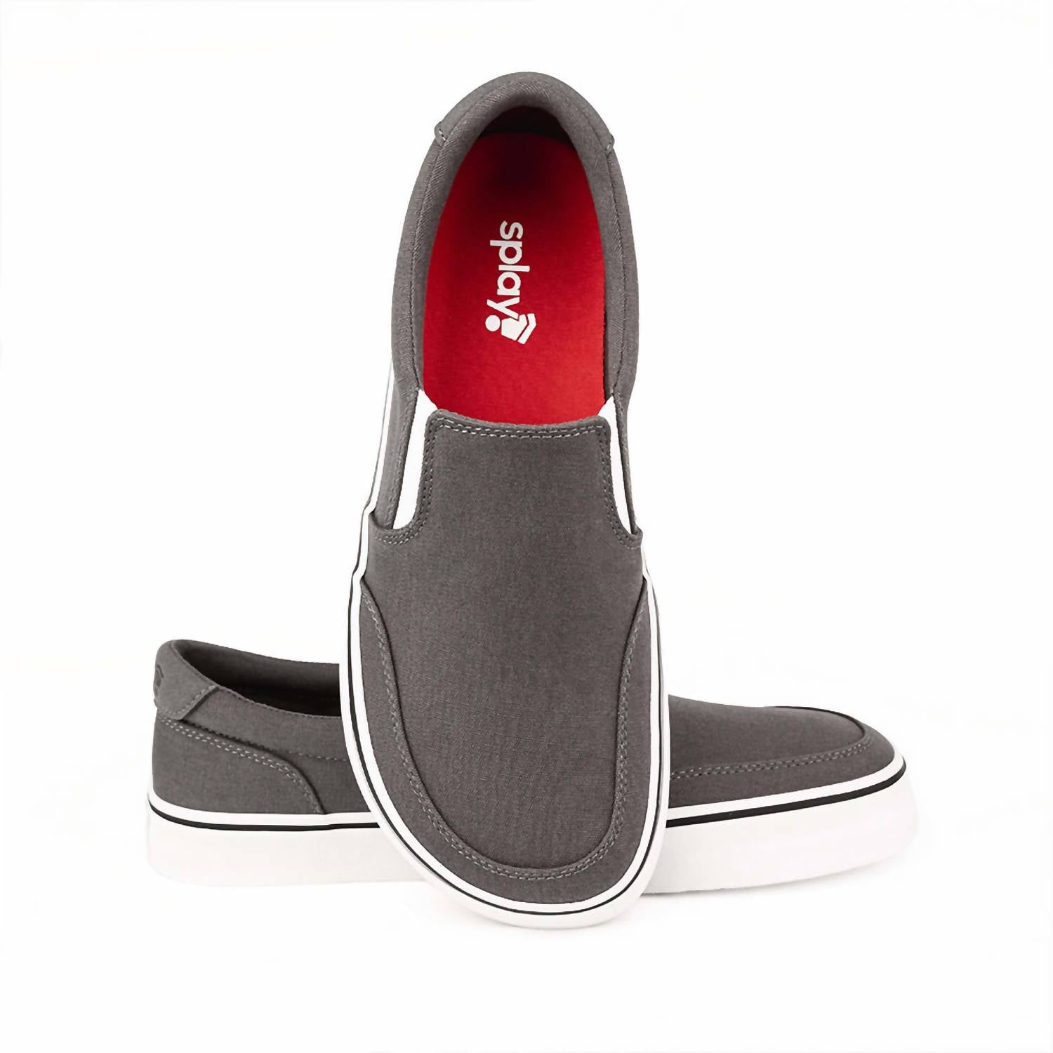 Introducing the Splay Streetstyle Unisex Slip-On Shoes in striking Gunmetal, perfect for back-to-school streetwear this summer. Crafted from 100% natural cotton, these sneakers feature a natural foot-shaped toe box and an ergonomic zero drop design for ultimate comfort. The 5.5mm rubber outsole and removable 4mm insole enhance durability, while the low (1 1/4"-2") heel height provides a laid-back feel. Embrace vegan materials in a versatile round toe silhouette, ideal for those who value flexibility and style.
