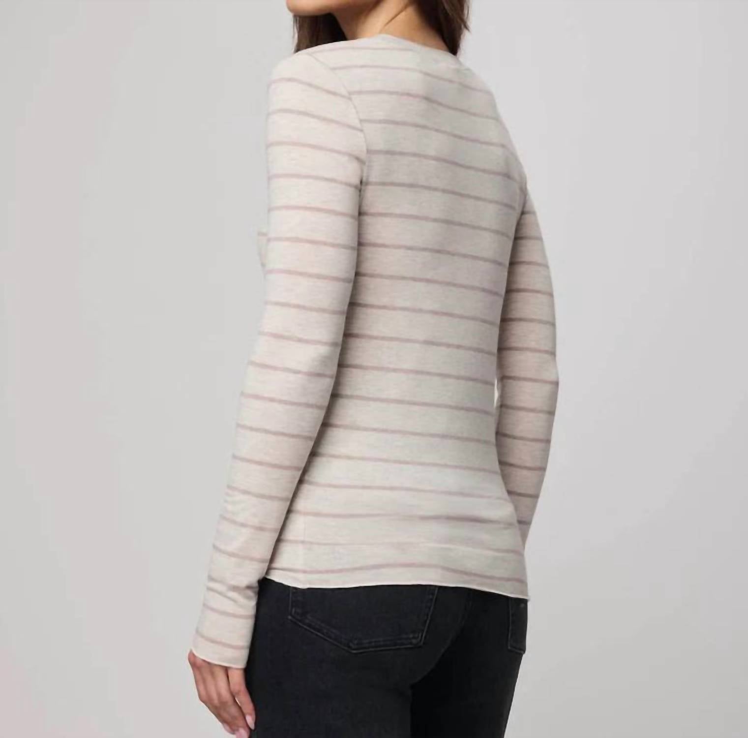 The perfect long sleeve tee that goes with just about anything. Elevate your style with the Bamboo Long Sleeve Tee by Splendid, featuring an elegant Pale Oak Heather stripe pattern. This minimalist design offers a relaxed look with its long sleeves and crewneck, perfect for casual engagements and fall occasions. Made from a comfortable viscose blend of 68% viscose, 29% polyester, and 3% elastane, this tee ensures effortless wear with its convenient pull-on closure. Easy to care for, simply machine wash cold and tumble dry low.