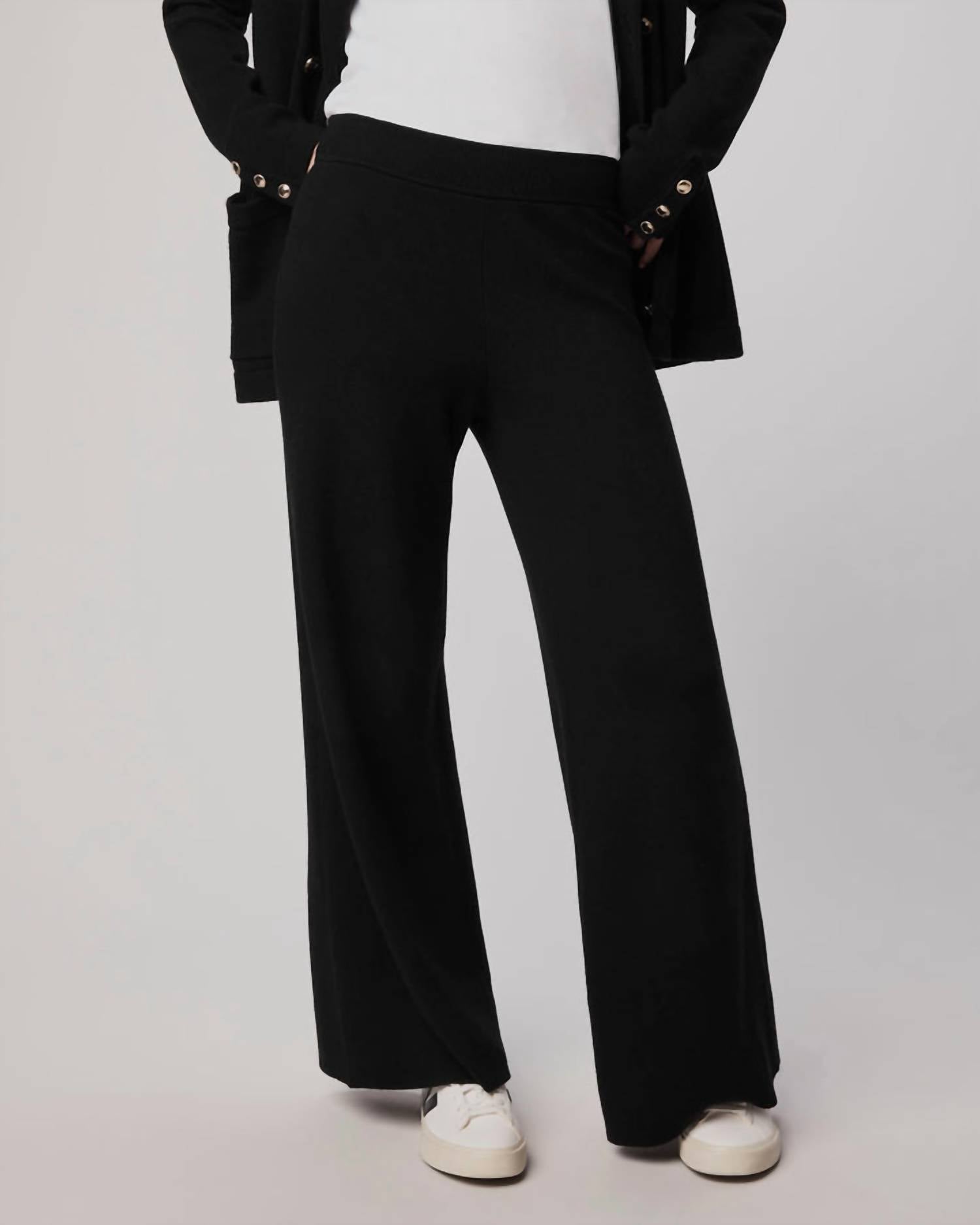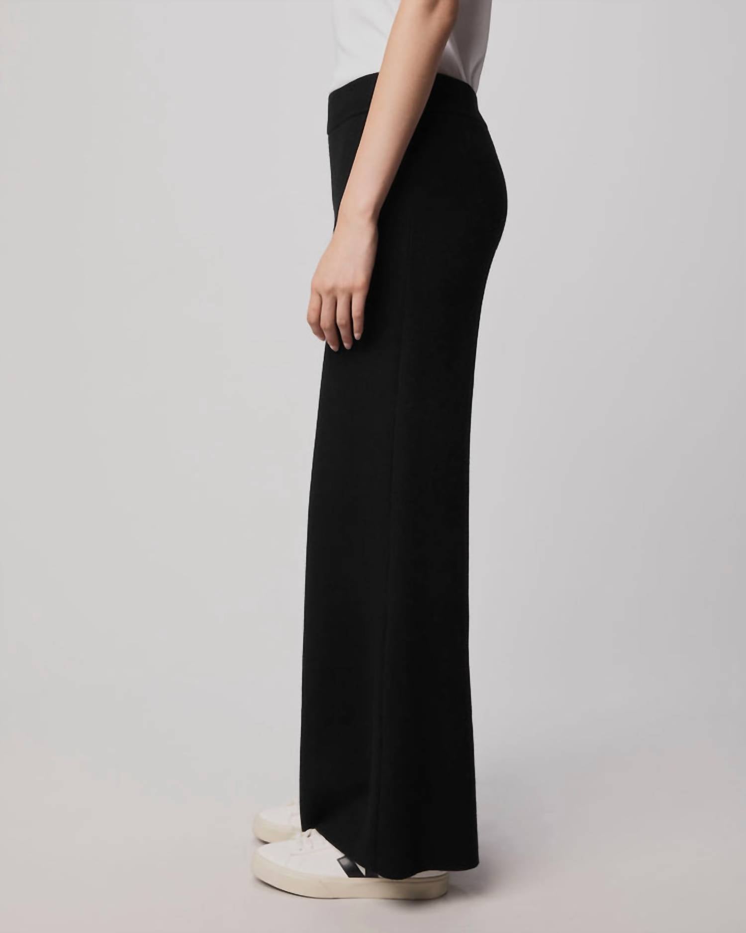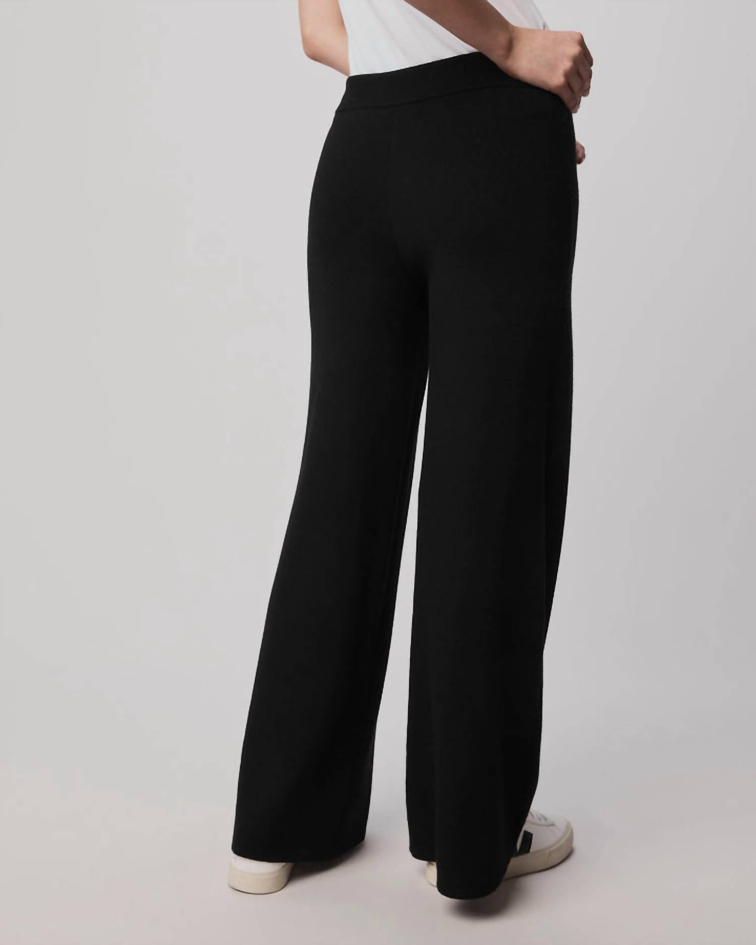 Slightly flared pants are all the rage right now and these are no exception. Pair these with your favorite tee for a more casual look, or with your favorite button-up blouse for an evening out. Introducing the Hannah Sweater Pant by Splendid, the epitome of cozy sophistication in solid black. Crafted from an ultra-soft, stretchy knit, these pants feature a wide-leg, flared silhouette for an effortlessly polished look. The pull-on elastic waistband ensures all-day comfort, perfect for travel and streetwear trends. Care: Dry clean only.
