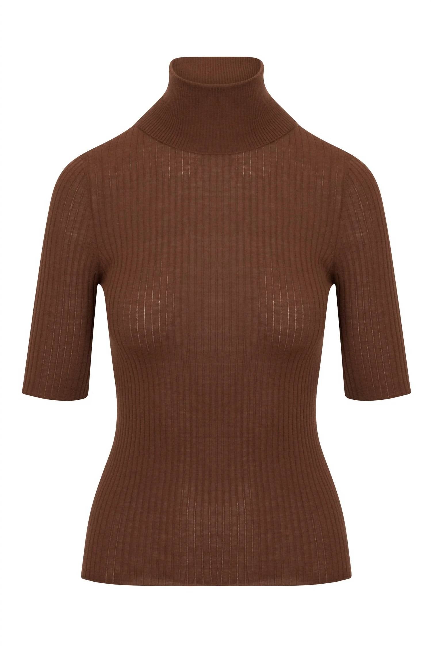 This classic, short sleeve tee will be your go-to staple this season and beyond. Elevate your collection with the Cashmere Turtleneck Top by SPRWMN. This women's piece features short sleeves and a chic turtleneck, seamlessly combining elegance with comfort. Made from 100% high-quality Mongolian cashmere, it showcases playful lettuce hemlines and a slimming vertical rib-knit design. Closure: Pull on. Dry clean only. With a 23" length, it's the perfect layering essential.