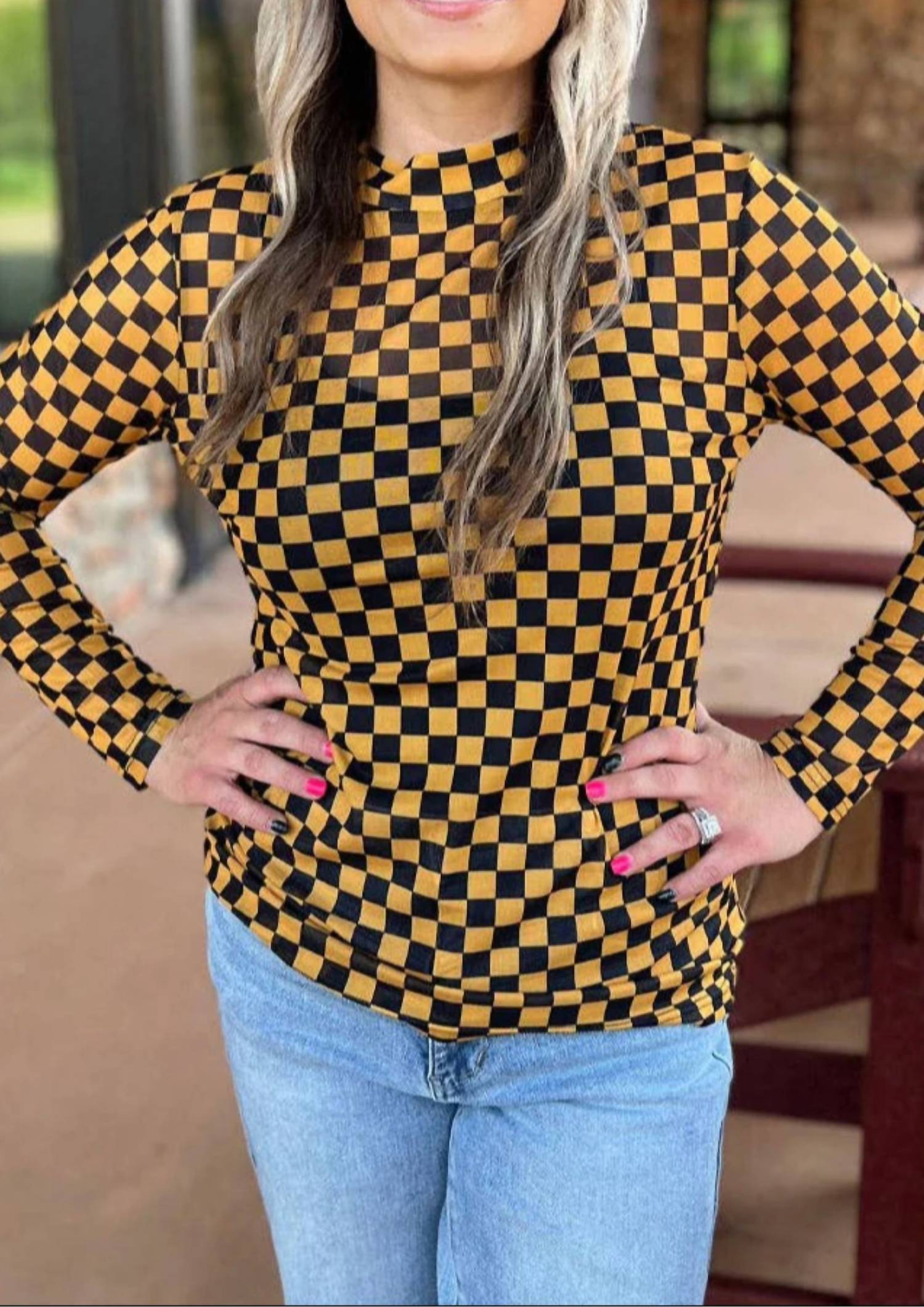 Look no further, you just found your perfect tee! Introducing the Check Mesh Top by Sterling Kreek, a trendy piece for the fashion-forward woman. With its long sleeves, plaid & check pattern, and gold/black color, this top is perfect for a dinner party or a night out. Crafted from 96% polyester and 4% spandex, it features a crewneck and a convenient pull-on closure. Care is hassle-free with machine wash and tumble dry instructions.
