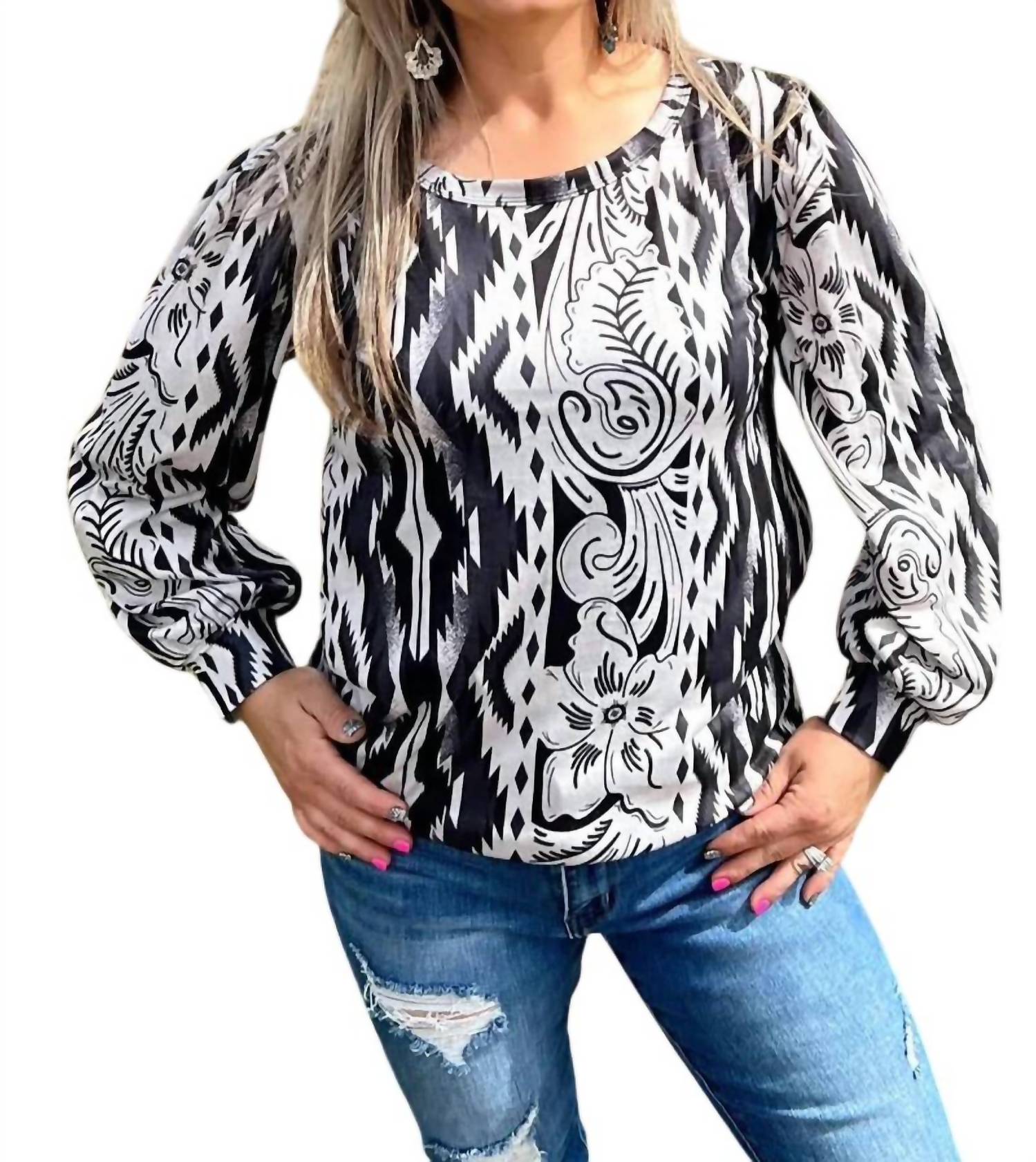A versatile blouse that works from desk to dinner! This sophisticated blouse features long sleeves and a classic crewneck, offering a timeless look with an elegant paisley-inspired pattern. Designed without pockets for a clean, streamlined silhouette, it’s a versatile piece perfect for dressing up or keeping it casual. Care with machine wash and lay flat to dry.
