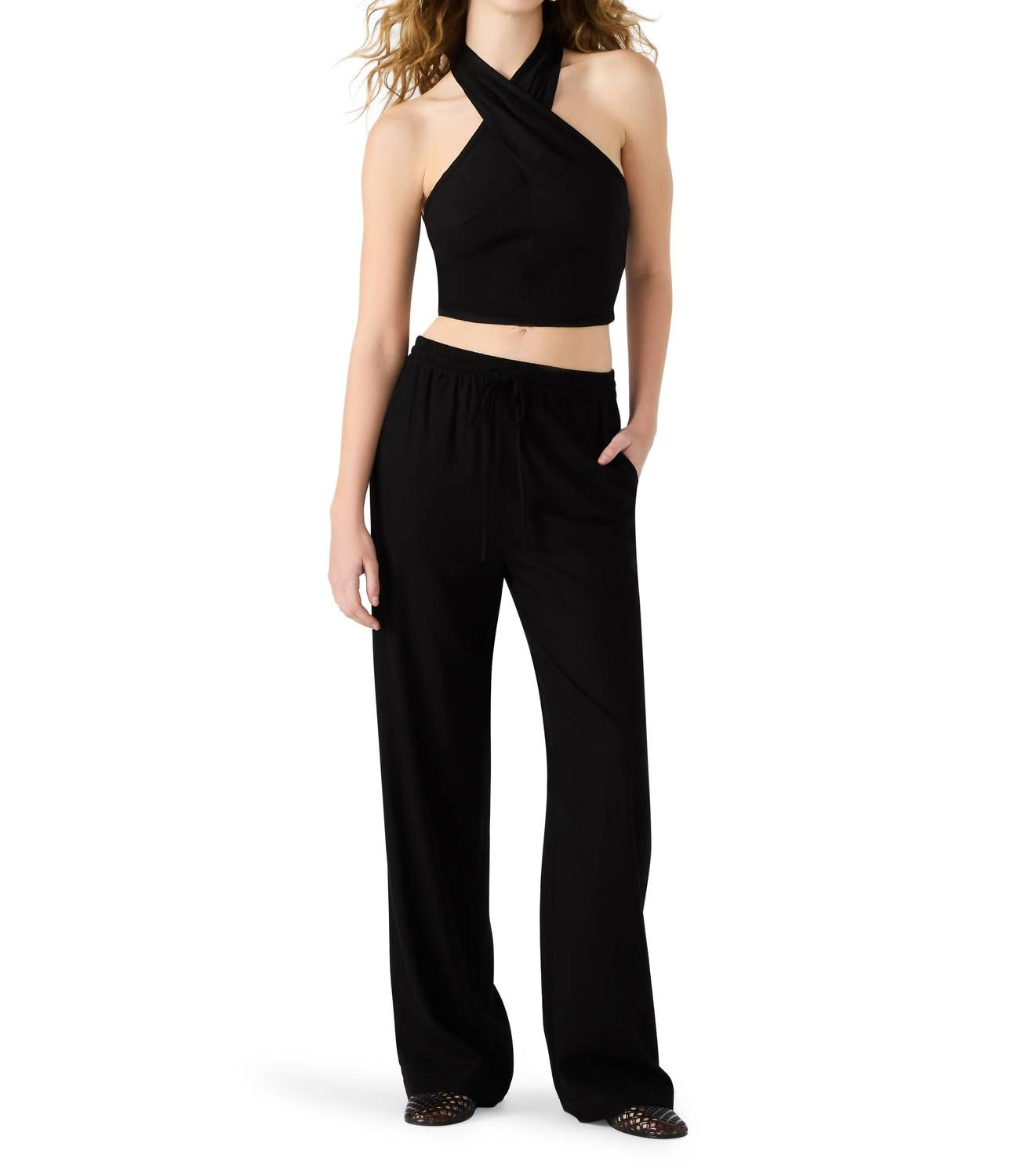 The perfect crop top for those warmer weather days. Unveil effortless summer elegance with the Winnie Sleeveless Halter Top by Steve Madden, perfect for pairing with all your high-waisted bottoms. Crafted from a breathable linen blend (55% linen, 45% rayon), this fitted, smocked back top offers a chic criss-cross neckline and invisible zipper closure. Made for warm weather, the cropped cut in solid black exudes a minimalist vibe, ideal for both holiday parties and casual outings. Care is simple with machine wash and tumble dry instructions, ensuring easy maintenance for your new wardrobe staple.