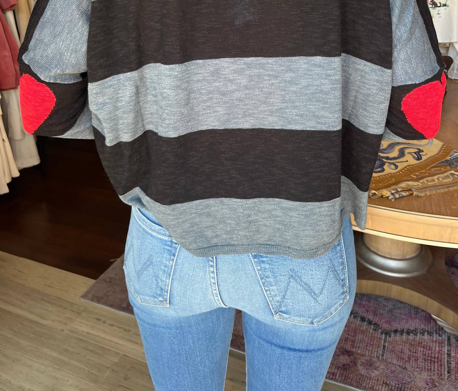 A long sleeve top you can wear with denim, skirts, well... just about anything! Introducing the Heart On Your Sleeve Coal by STITCHDROP, a chic long sleeve tee perfect for the holiday party season. With a stylish stripe pattern in a coal-grey hue, this lightweight, boxy crop top features a drop shoulder design and a ribbed crew neck, sleeves, and hem. The pull-on style ensures easy wearability, while the lack of pockets keeps the silhouette sleek and uncomplicated. Designed for women who appreciate effortless style.