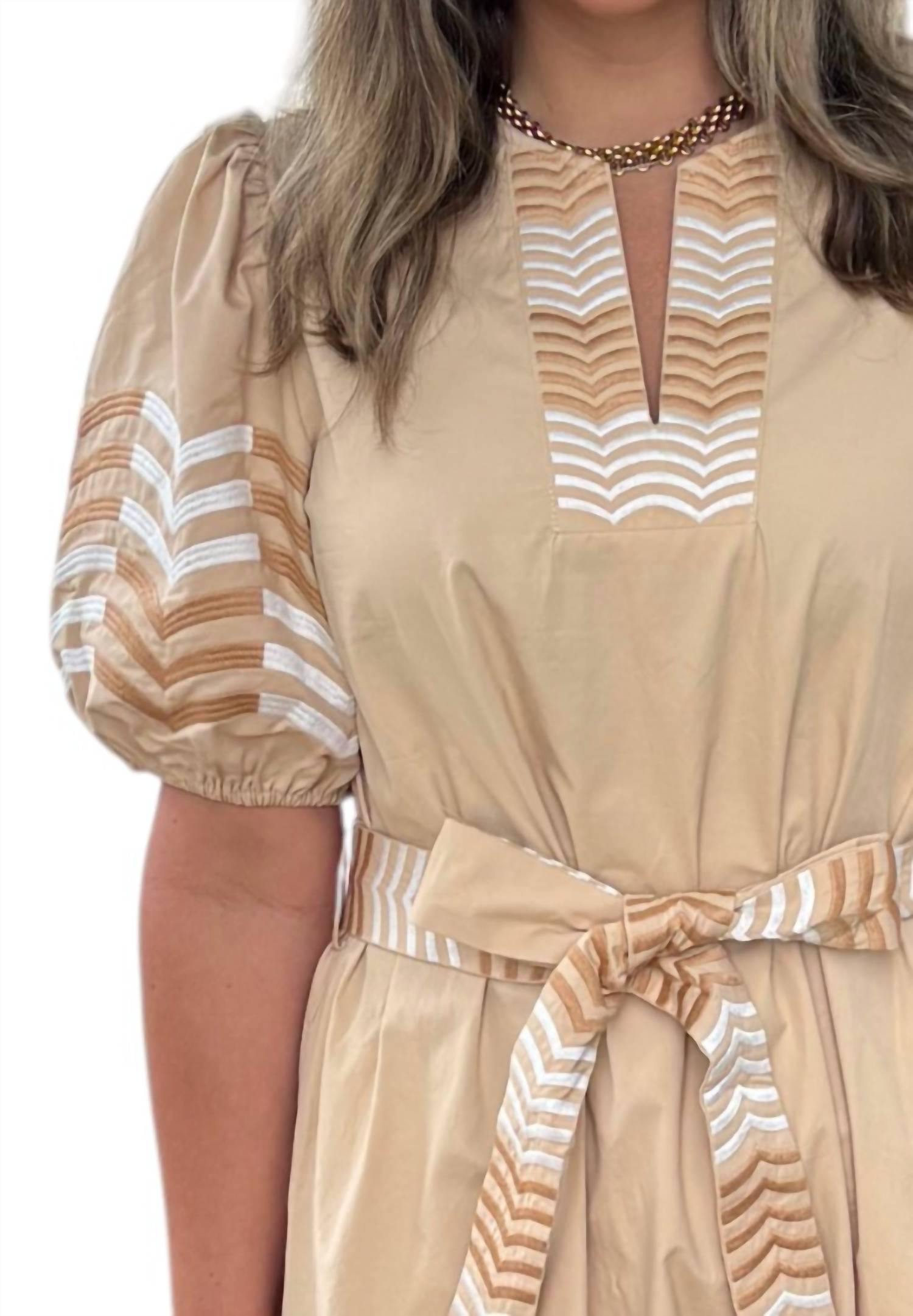 Just add slides or mules and you are good to go. Embrace minimalist elegance with the Golden Sands Midi Dress by Strut & Bolt, a true travel essential in a versatile beige hue. This short-sleeve wrap dress features a stylish collar neckline, making it ideal for a spring outing. Crafted from 100% cotton, it offers both comfort and style, while the pull-on closure ensures easy wearability. Care for this dress with a simple machine wash.
