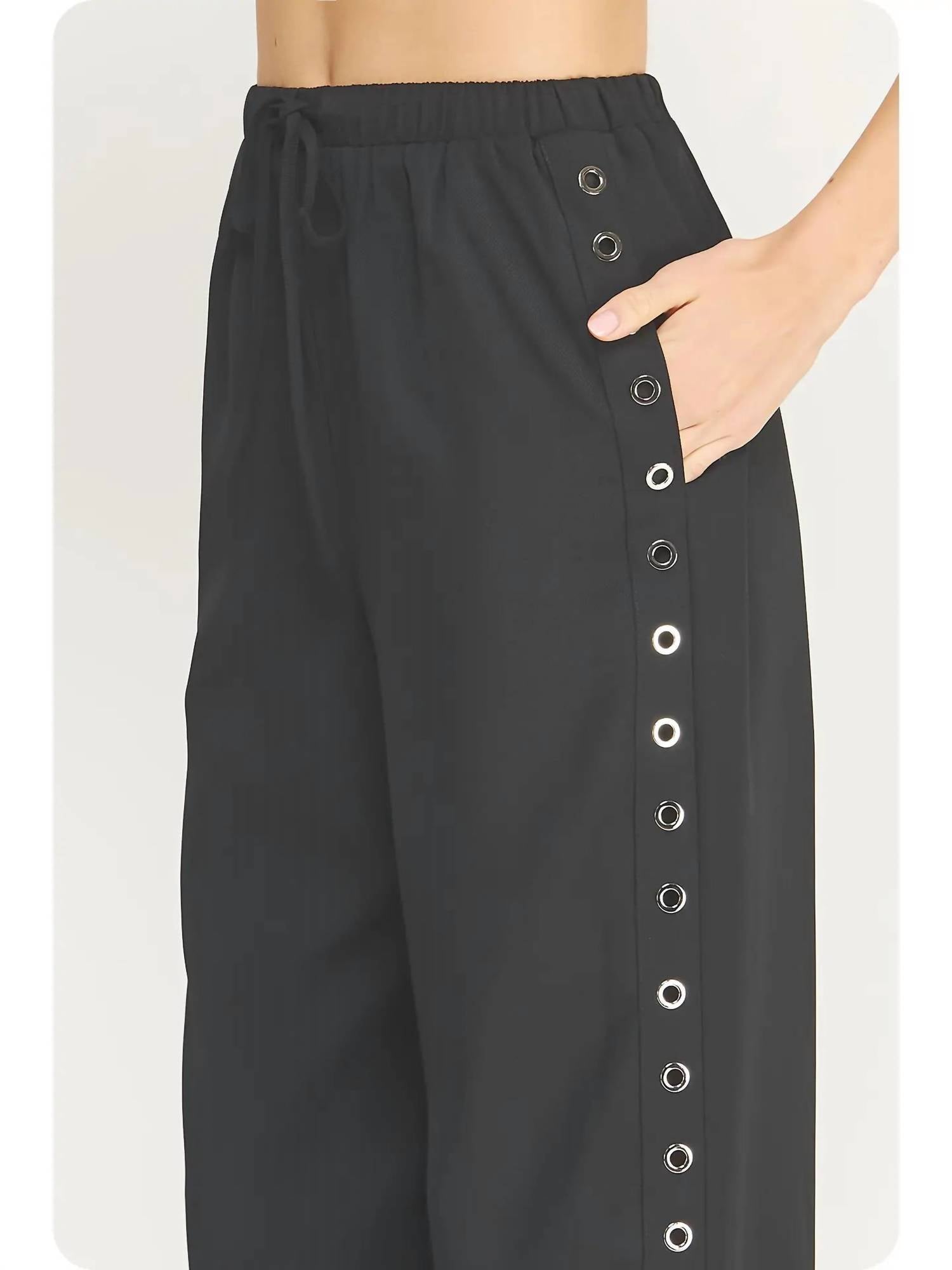 A match made in heaven. This two-piece set is so cute, you'll wish you could wear it out of the house! Did we mention how comfortable it is, too? You may want two sets! Introducing the Haverty Eyelet Set by Strut & Bolt, a chic ensemble that enhances your style effortlessly. This set features a V-neckline top with kimono short sleeves, crafted from 100% polyester, boasting a luxurious twill crepe fabric. Paired with matching grommet detail pants, this loungewear set provides a sophisticated yet comfortable look with an elastic waist and practical side pockets. Perfect for holiday parties, it exudes vintage allure with a modern twist. Care: Machine wash, tumble dry.
