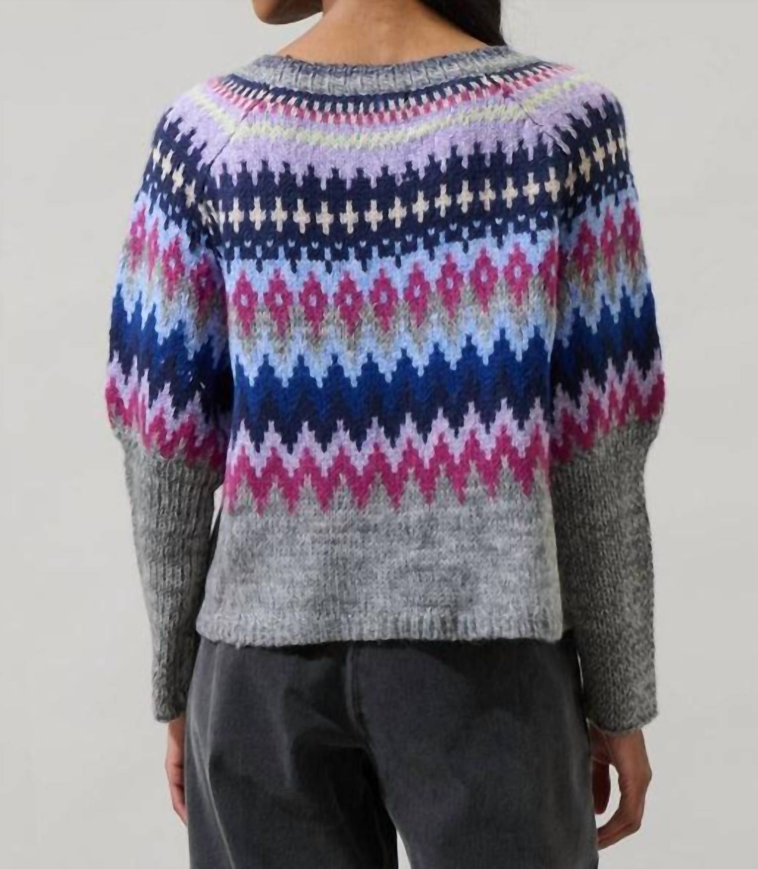Experience the perfect blend of comfort and style with this trendy crew neck sweater, designed to effortlessly elevate your wardrobe. Pair it with your favorite denim and loafers for the perfect look. Making a fashion statement is easy when you've got on the Daria Fair Isle Crewneck Sweater. A horizontal unique design lays on this ribbed knit sweater shaping a crew neckline that tops long sleeves. It maintains a relaxed fit and can be paired with bottoms of your choice. - Fair isle pattern - Crew neck sweater - Mutton sleeves - Relaxed fit - Color: Multi Size + Fit - Model is 5'10"" and wearing size XS - Measurements taken from size S - Chest: 20 3/4"" - Length: 22"