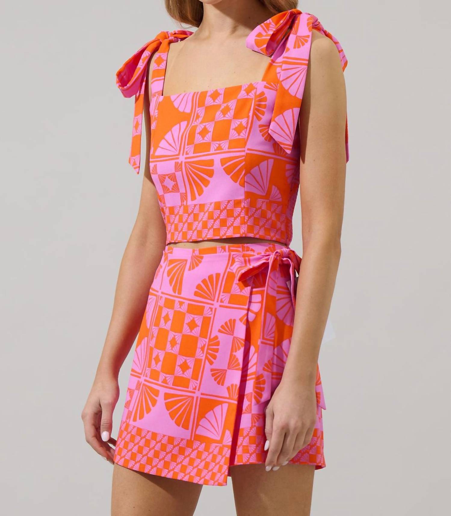 The perfect crop top for those warmer weather days. Introducing the Haines Town Kori Top by SUGARLIPS, a vibrant addition to your summer wardrobe in eye-catching Orange Magenta. This sleeveless crop top features a playful pattern and convenient shoulder tie straps for a personalized fit. With a square neckline and a smocked back, it promises both style and comfort for a boho-chic look at your next cocktail party. Closure: Tie closure. Care: Dry clean only.