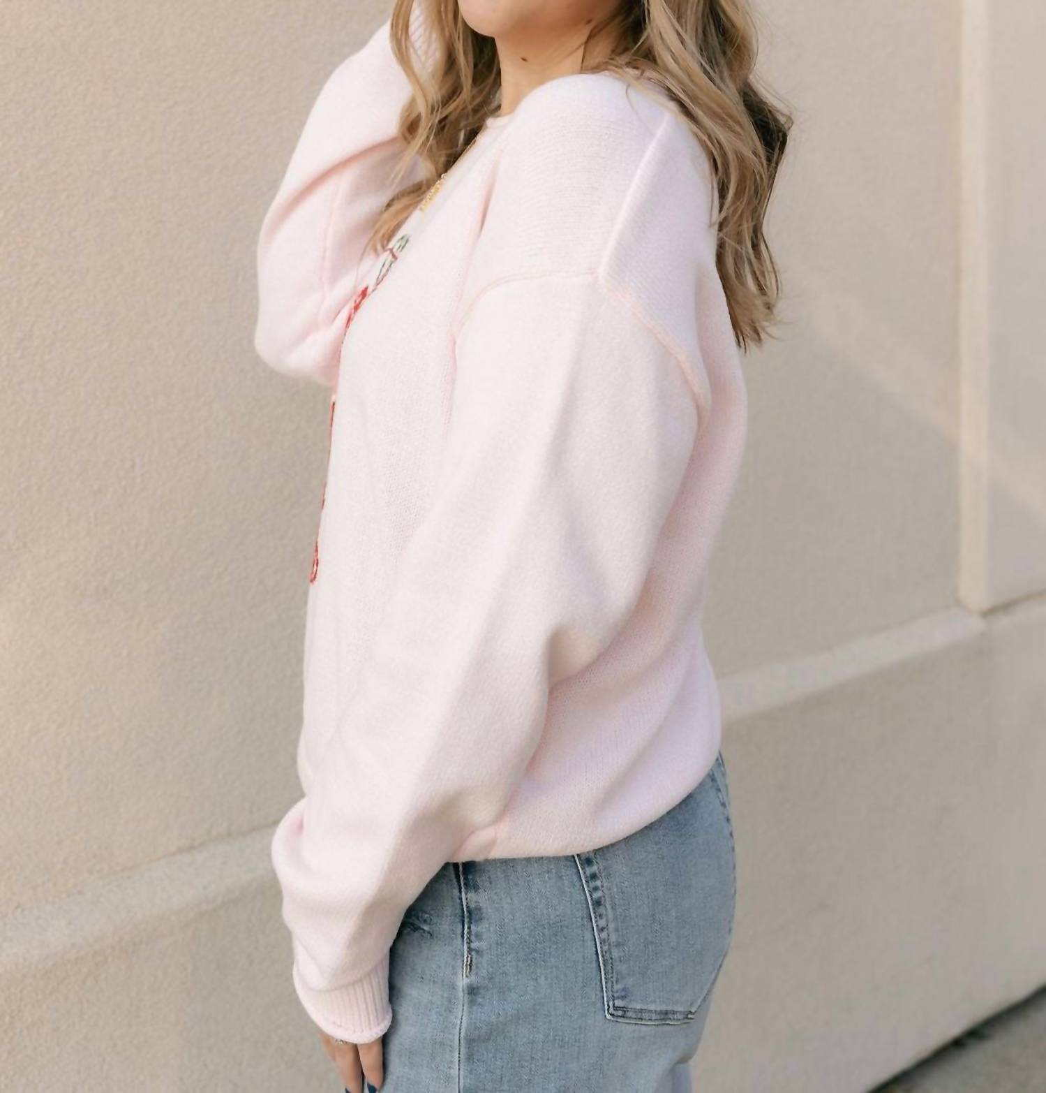 Experience the perfect blend of comfort and style with this trendy crew neck sweater, designed to effortlessly elevate your wardrobe. Pair it with your favorite denim and loafers for the perfect look. Add a pop of fun to your wardrobe with the Valentine Martini Sweater by Sunday Edition in a delightful pink hue. This women's crewneck sweater features long sleeves and a playful graphic pattern, making it the perfect streetwear piece for travel and fall occasions. Made from soft, cozy fabric, the relaxed-fit sweater ensures comfort all day and is easy to style with its pull-on closure. For care, simply machine wash and tumble dry, allowing you to enjoy this standout piece effortlessly.