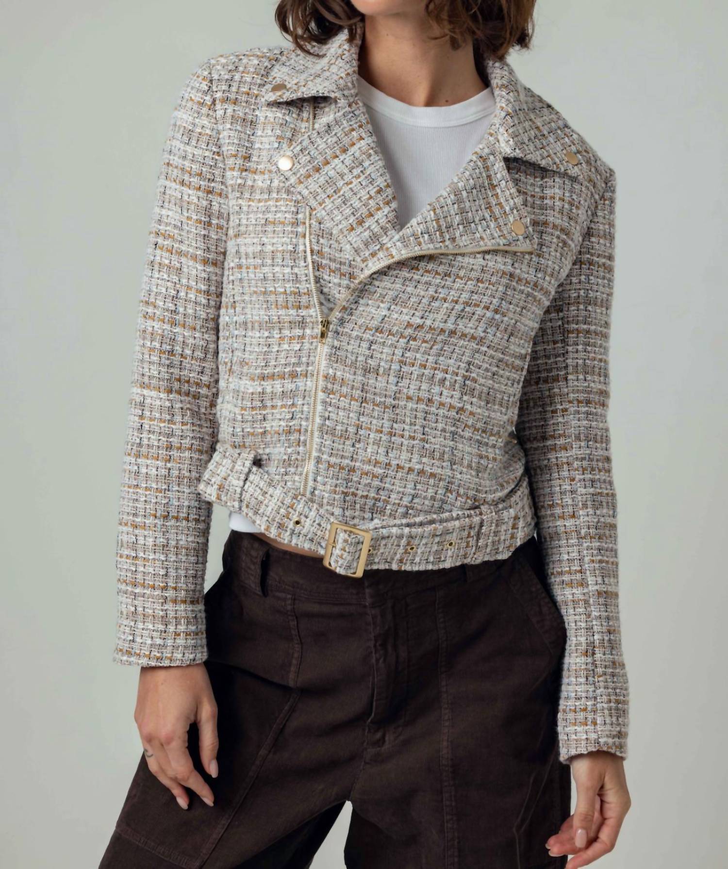 A casual yet cool jacket that every closset needs. Meet the Cropeley Jacket by Sundays—a stylish and versatile addition to your fall wardrobe in Spice Boucle. This patterned jacket features long sleeves, a collar neckline, and a chic zip closure, allowing you to wear it open or closed with ease. Crafted from high-quality polyester, it is perfect for holiday parties, capturing a vintage flair that stands out during Thanksgiving. Additionally, the jacket includes a waist belt for added style and customization.