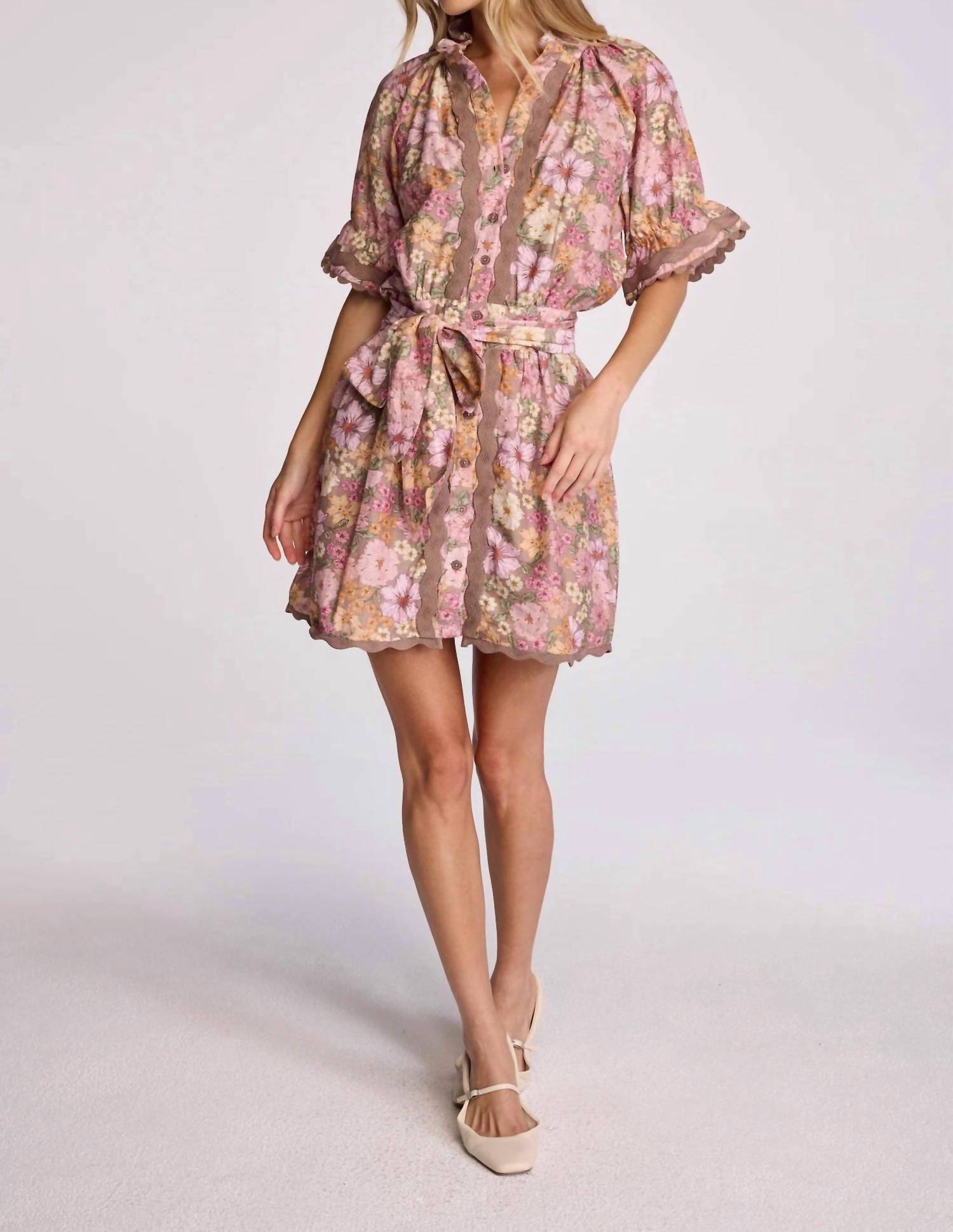 The perfect mini dress for those warmer months. Introducing the Evelyn Mini Dress by Sundays, perfect for your Spring wardrobe in a captivating Dusk Floral pattern. This short-sleeve A-line dress is crafted from a luxurious cotton blend(80% Cotton, 20% Silk), featuring a charming collar neckline and a flattering length that falls just above the knee. Its button closure adds convenience and style, making it an ideal choice for vacation wear. Care is simple with machine wash instructions and it’s safe to tumble dry, ensuring easy maintenance.