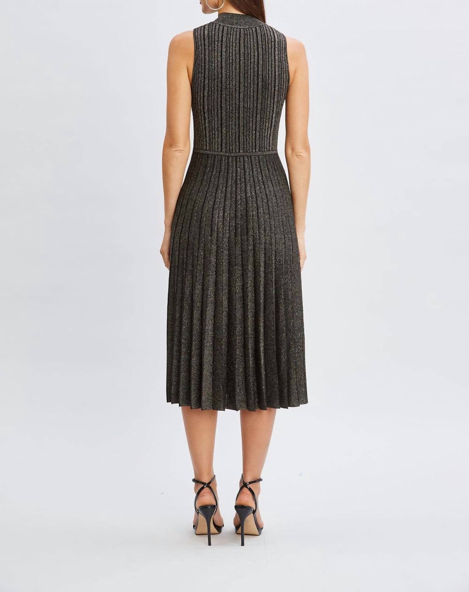 Tahari - Metallic Mock-neck Pleated Fit & Flare Dress
