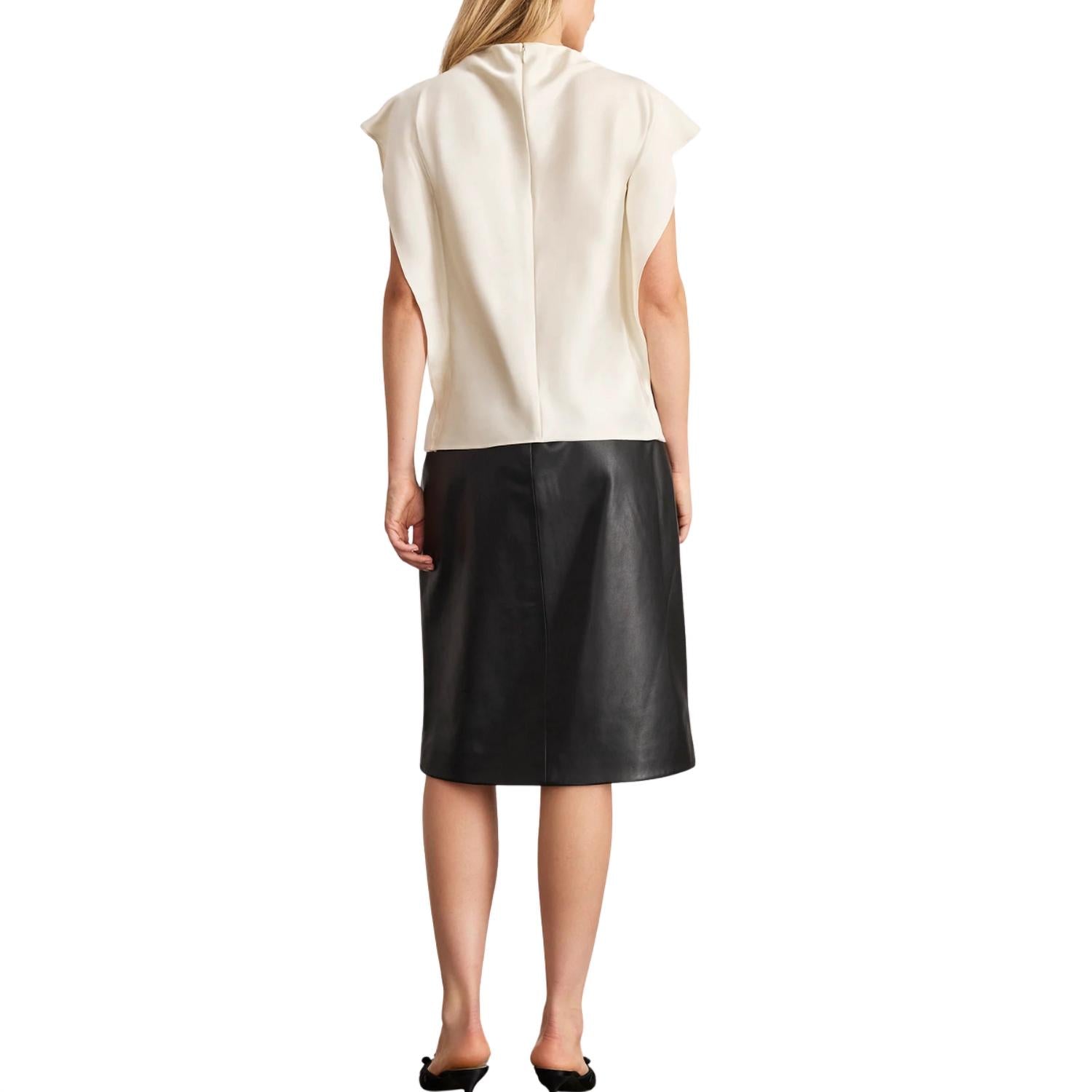 Elevate your fall wardrobe with the Amance Leather Skirt by TANYA TAYLOR, crafted in luxe black leather for a timeless, minimalist appeal. This women's A-line skirt features a sleek faux wrap detail and side slit, offering a chic silhouette suitable for a dinner party or Thanksgiving gathering. With its thoughtfully designed proportions and refined detail, this solid pattern skirt embodies elegance. Embrace the understated sophistication of this fall staple and make a stylish entrance at your next occasion.