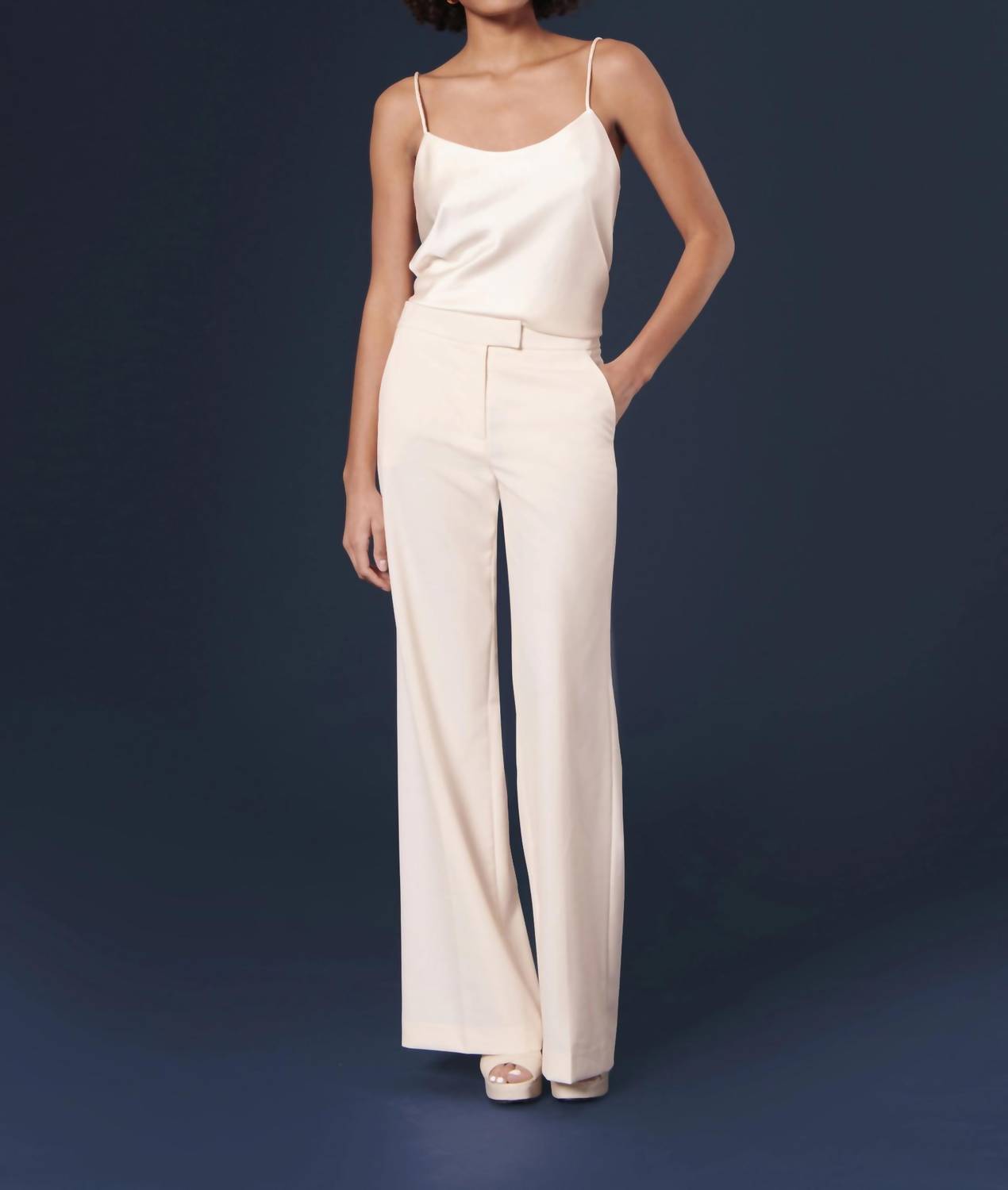 Elevate your workwear wardrobe with the Primavera Cold Wool Pants by TARA JARMON, a refined choice in ecru. These trousers feature a high-rise fit and flared legs, paired with Italian side pockets and welt pockets at the back. Crafted from a 45% wool and 55% polyester blend with a lining of 52% viscose and 48% polyester, they offer a luxurious touch. Closure: Zip, button, and hook closure. Care: Dry clean only.