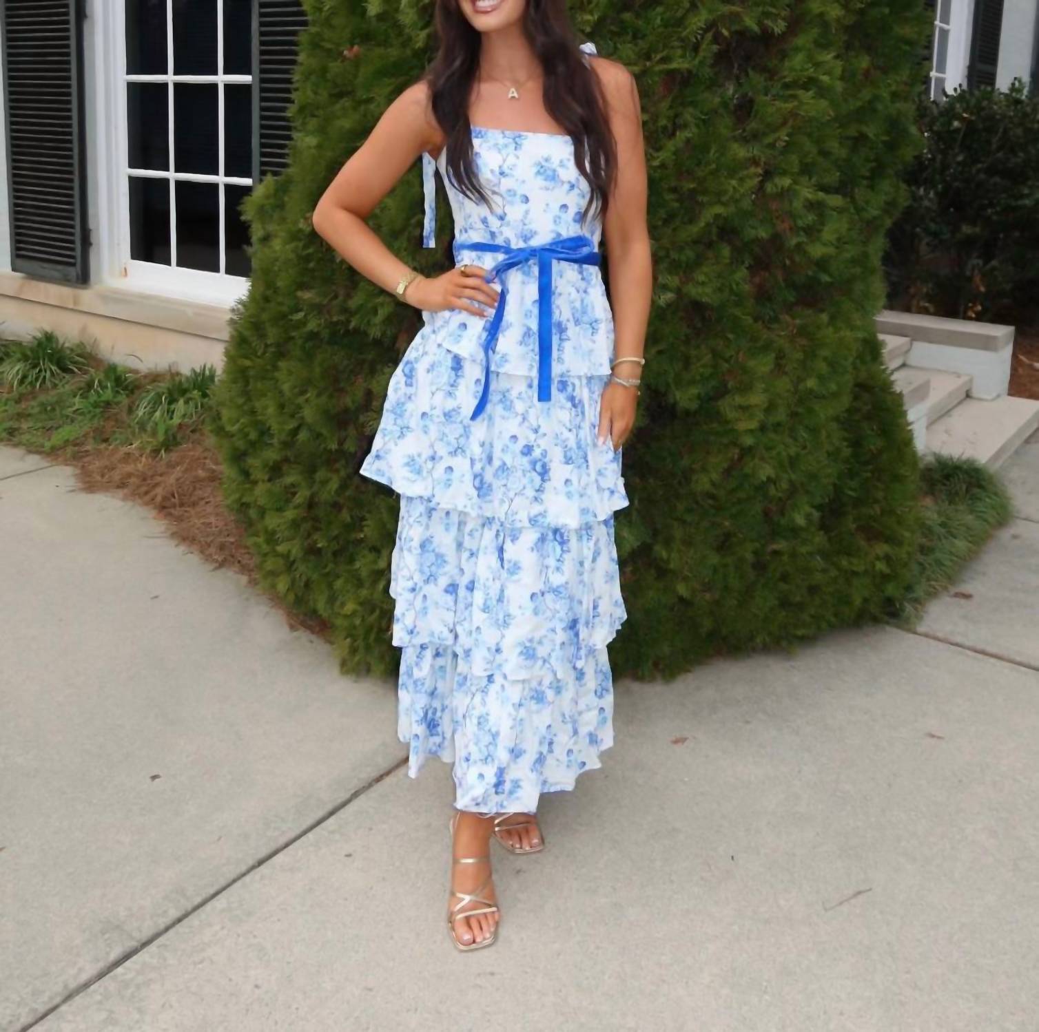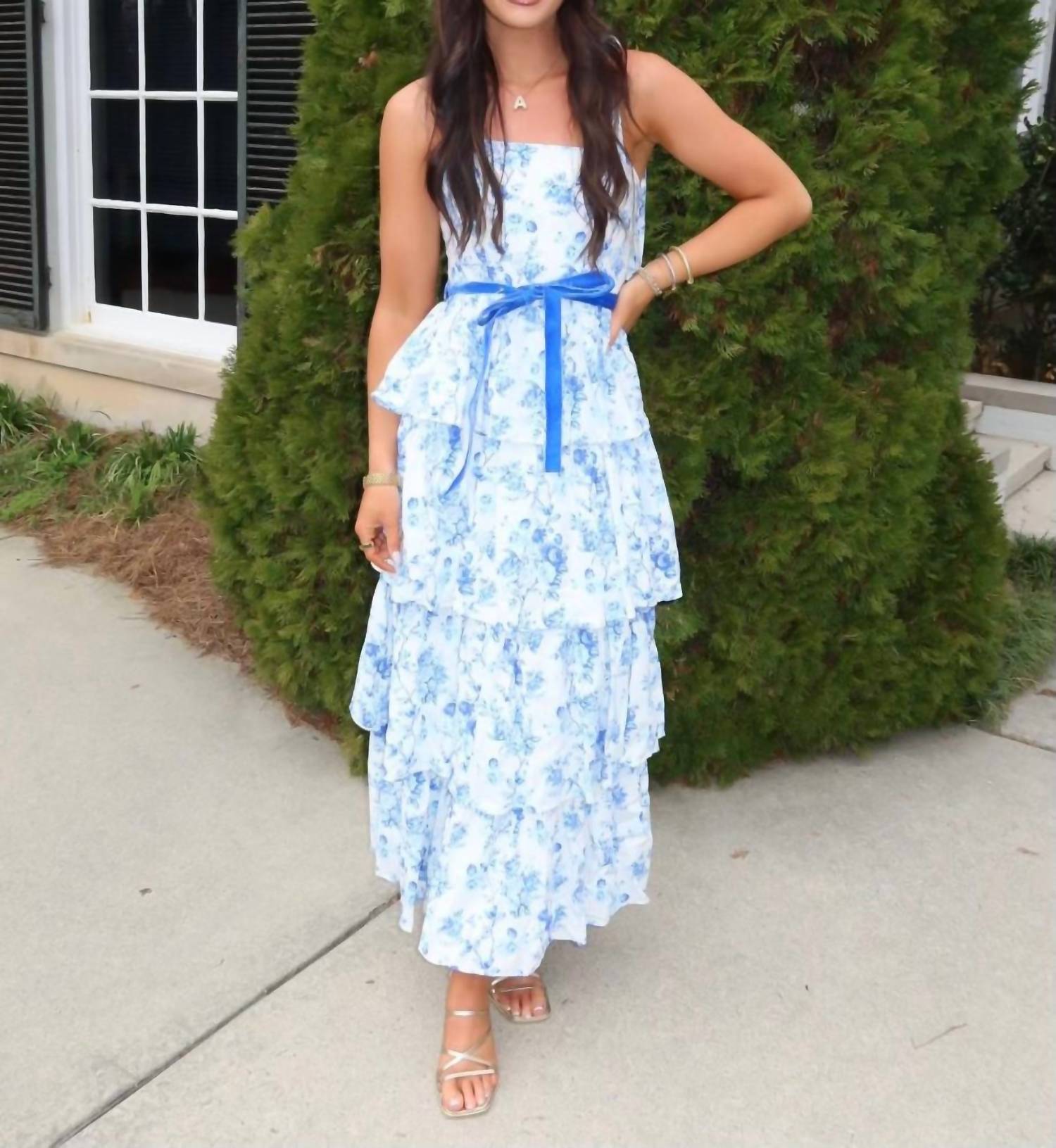 The perfect length dress does exist. Elevate your summer wardrobe with the Blue Floral Print Tiered Midi Dress by TCEC, perfect for church or Valentine's Day celebrations. This women’s A-line silhouette dress features delicate spaghetti straps and a chic squareneck, detailed with a velvet trim belt and hidden zipper for a seamless look. Crafted from a 70% Rayon and 30% Linen blend, it promises comfort and breathability with its pull-on closure. Care instructions: Machine wash and line dry.