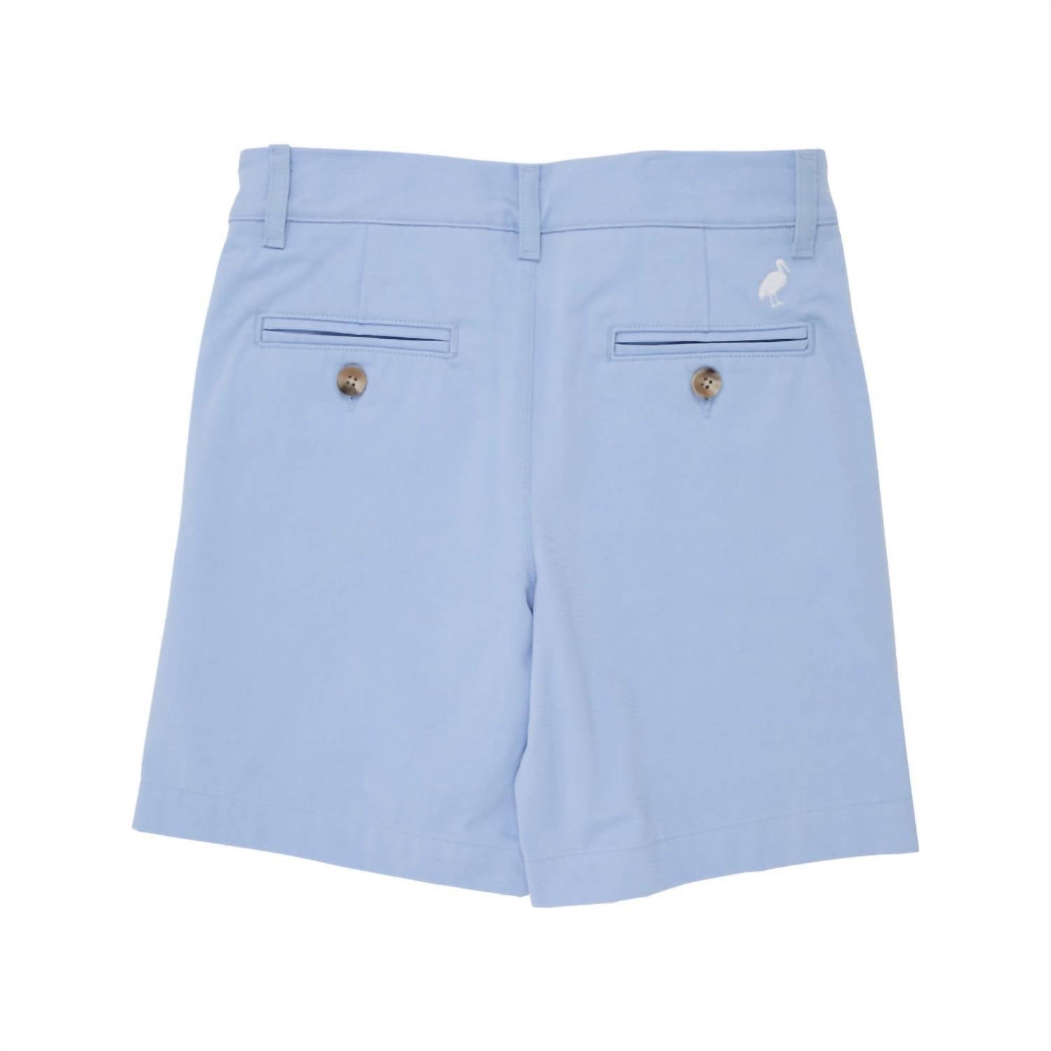Enhance your little one's summer wardrobe with the Boy's Charlie's Chinos by The Beaufort Bonnet Company, crafted in a striking Beale Street Blue. These cotton blend shorts offer a minimalist, solid pattern perfect for a variety of occasions, including vacations and Thanksgiving celebrations. The shorts feature a faux button for added charm. Ideal for spring, these shorts provide a stylish, effortless look for boys.