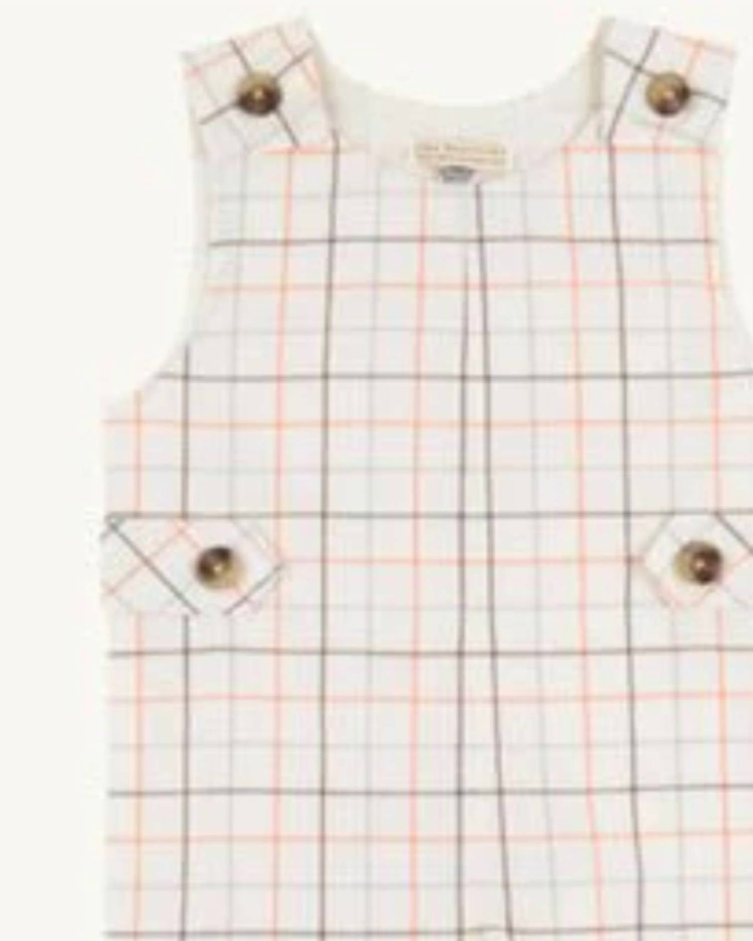 Introducing the Kid's Jack Keene Jon Jon Jumpsuit by The Beaufort Bonnet Company, a stylish choice for young gents. This beige jumpsuit features a charming plaid and check pattern perfect for summer vacations. Proudly crafted by a trusted brand, it ensures both comfort and style for your little one's adventures. Care is a breeze with machine wash and tumble dry instructions.