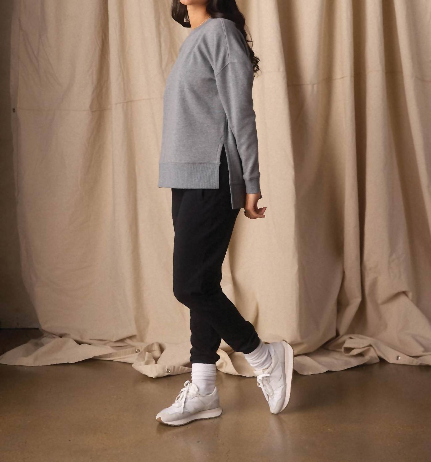 Stay warm and stylish in this versatile and effortlessly cool knitwear staple. Wear it alone or layered, it's the perfect sweater for the season and you'll wish you had it in every color. The Normal Brand presents the Fleece Puremeso Splitside Pullover, a minimalist staple for women in a soft heather grey hue. This long sleeve pullover boasts a comfortable cotton blend of 54% cotton, 40% polyester, and 6% spandex, ideal for fall vacation wear. Made without pockets for a sleek silhouette, it features a classic crewneck and a convenient pull-on closure. Care for this solid piece is easy with machine wash instructions.