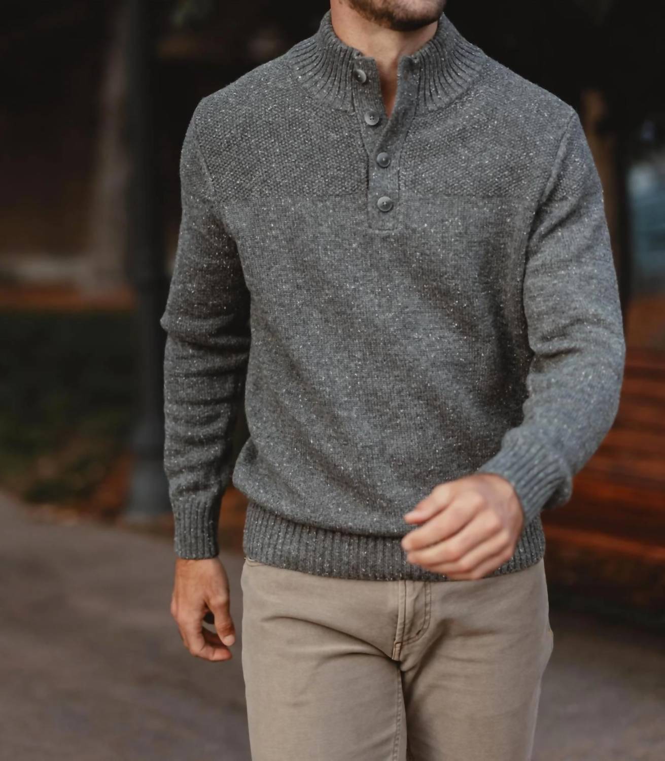 The Men's Seawool Nep Popover by The Normal Brand is a sustainable, minimalist wardrobe classic designed for the modern, traveling man. In a versatile grey solid pattern, this long sleeve, mockneck turtleneck features an innovative Seawool composition, combining oyster shells with upcycled plastic bottles for a warm yet breathable experience. Showcasing a multi-knit construction with a jersey body and textured yoke, this piece offers a cool, classic look that fits true to size. Closure Type: Pull on. Ideal for fall occasions, this turtleneck embodies eco-friendly style.