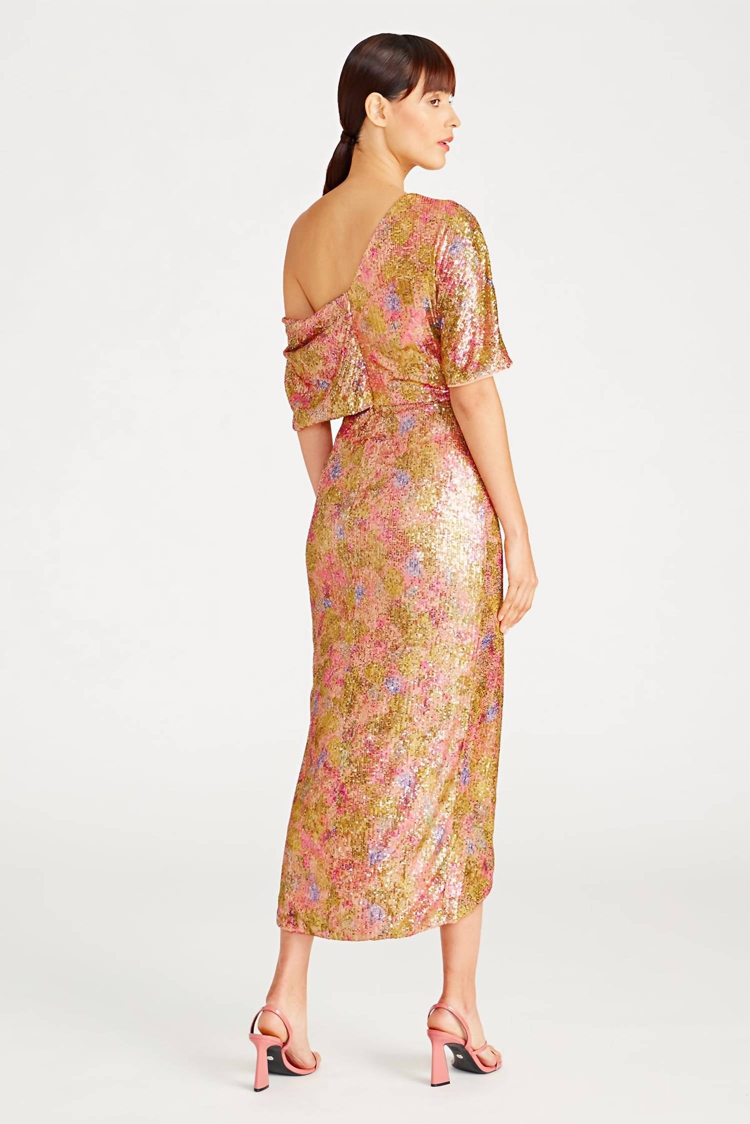 A dress you'll be reaching for season after season. Pair it with your favorite denim jacket for a more laid-back look. Elevate your engagement attire with THEIA's Women's Jade Draped High Low Gown in a Renaissance Floral design. This asymmetrical A-line silhouette offers a boho-chic vibe with its off-the-shoulder neckline and short sleeves, perfect for summer occasions. The gown is skillfully crafted for effortless wear with a convenient pull-on closure. Embrace the trend and make a sophisticated statement in this stunning piece.