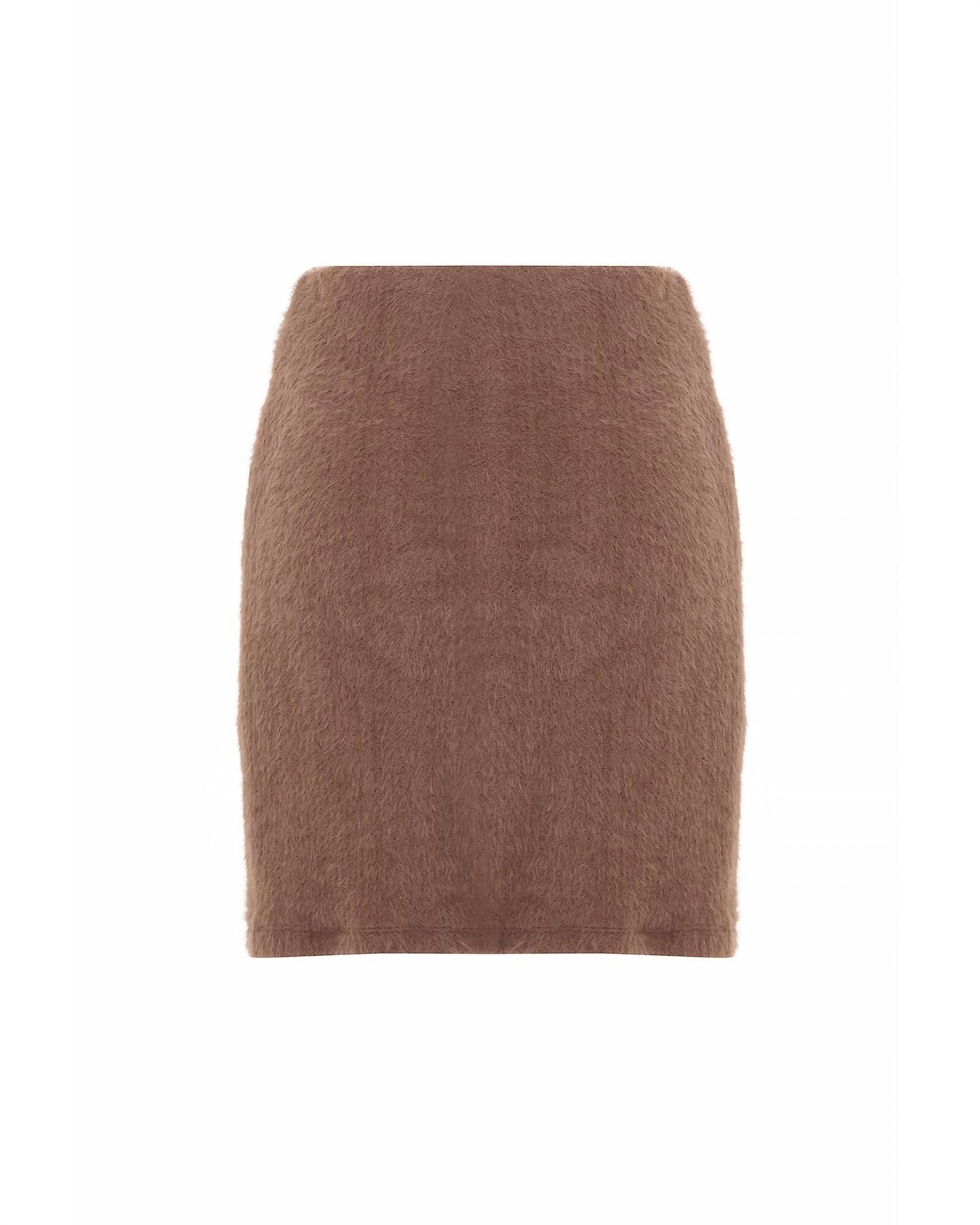 Tuck in your favorite tee for a more laid-back vibe. Elevate your wardrobe with the Carme Plush Lace Pull-on Skirt by THEO the Label, designed in an inviting Cappuccino hue. This mini skirt features a teddy-textured finish and a minimalist silhouette, offering a trendy and polished look. Crafted from 92% Polyamide, 6% Polyester, and 2% Elastane, it is meticulously made in Turkey, featuring a clean pull-on waistband for comfort. For care, simply dry clean to maintain its structure and texture. Model wears size S, with a recommendation to take your usual size or size up for a relaxed fit.