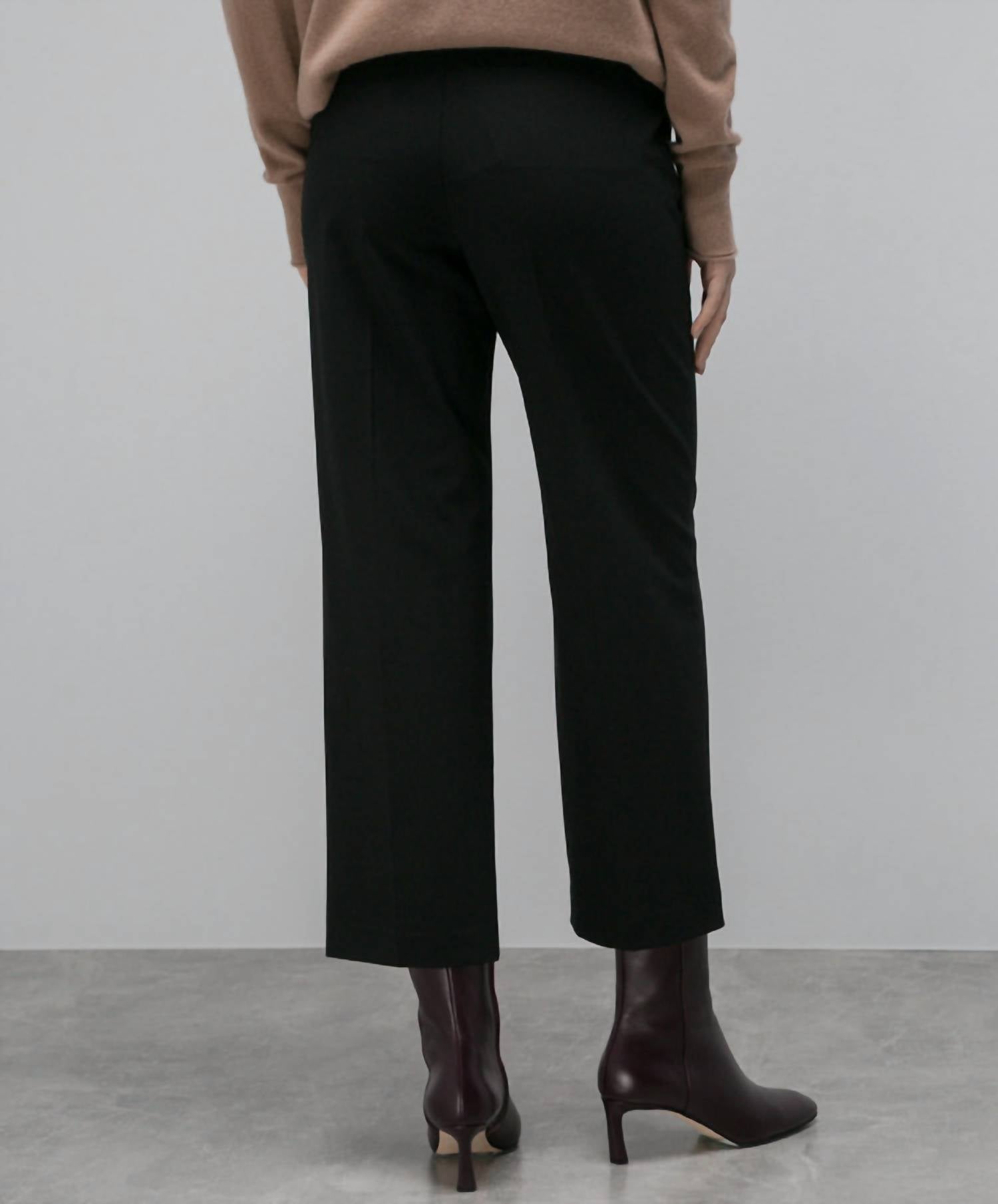 Meet the High-rise Cropped Straight-leg Trousers by Theory, a testament to refined style and comfort. Crafted from a signature wool blend of 96% wool and 4% elastane, these pants provide a polished look and easy movement with their relaxed, straight-leg fit. They offer a high waist rise and cropped length, with an inseam of 26.5", and are detailed with classic pockets, belt loops, and a secure hook-and-zip closure. Made in China, these trousers embody a solid black color and are perfect for travel and workwear in the fall, with care instructions recommending dry cleaning.