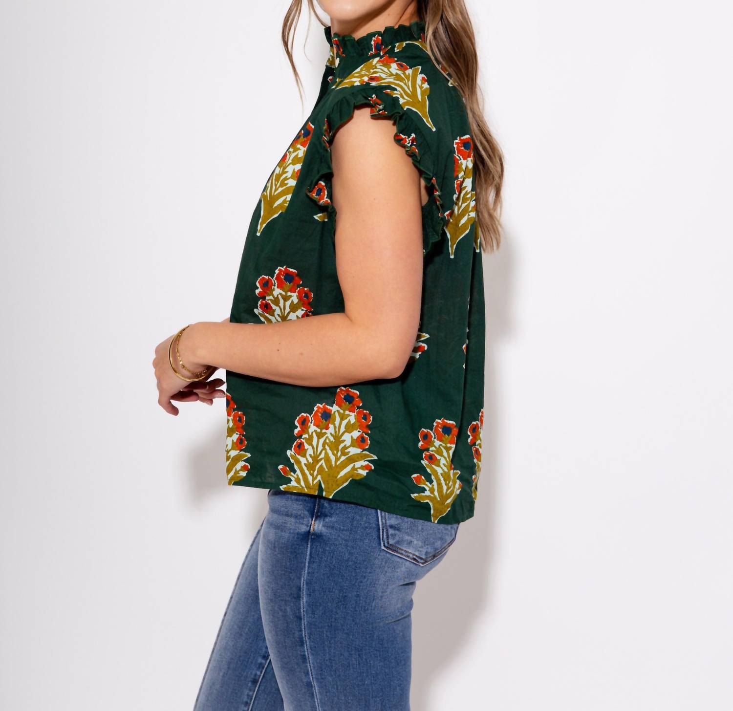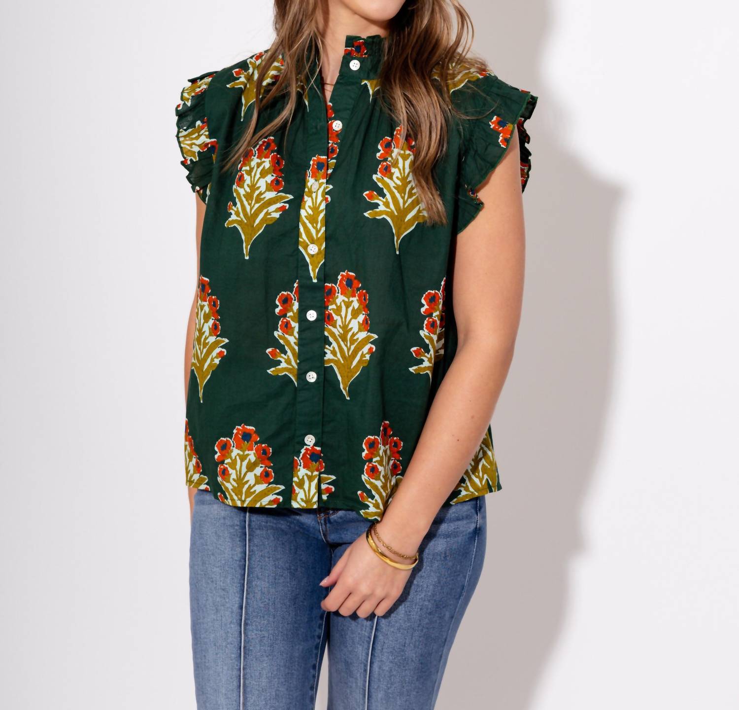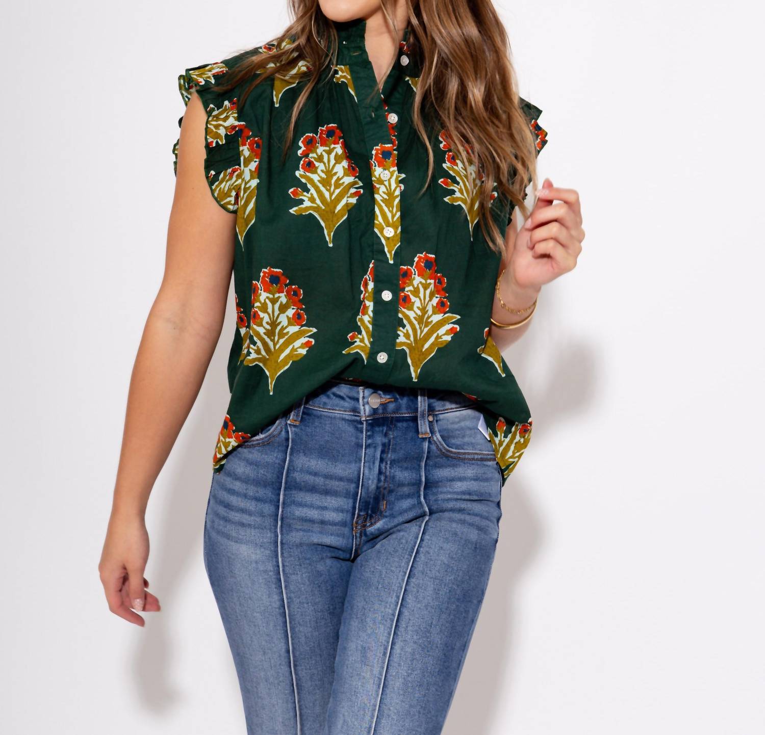 A versatile blouse that works from desk to dinner! Introducing the Floral Grove Flutter Top by THML, a vibrant green blouse designed to elevate your wardrobe. This piece features delicate cap sleeves and a charming floral pattern, adding a touch of effortless elegance to any outfit. It's crafted for comfort throughout the day, making it perfect for everything from casual outings to holiday parties. The collar neckline enhances its fresh and feminine look, ideal for expressing your maximalist style.