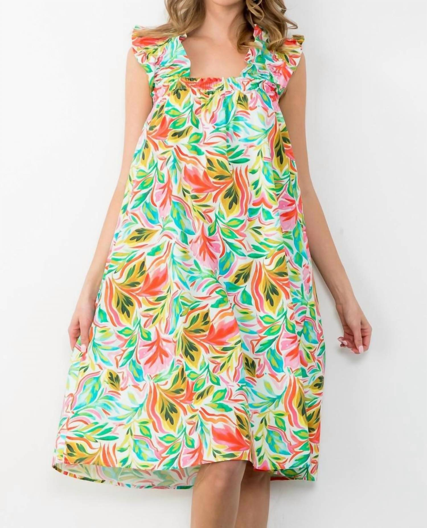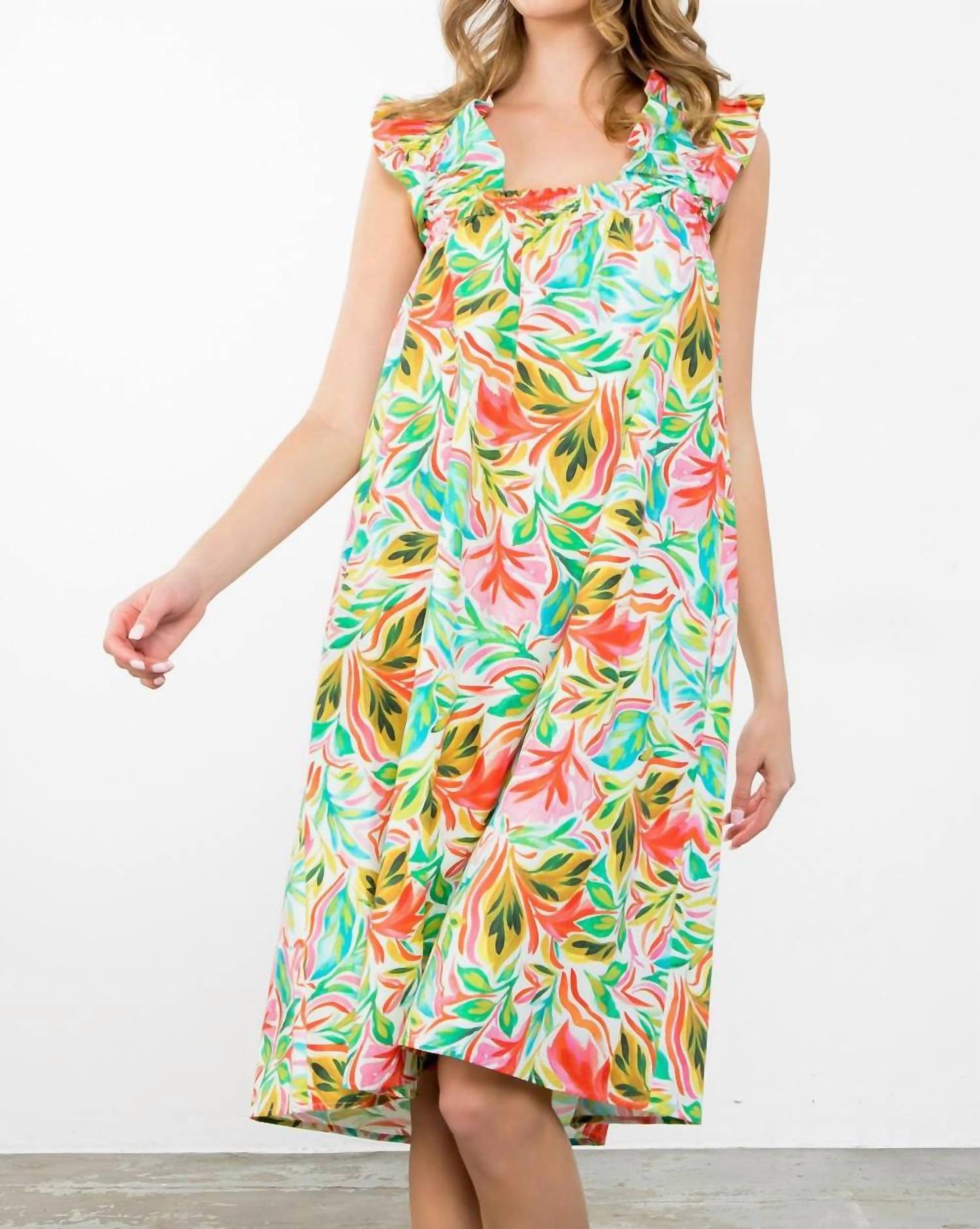 The pefect long sleeve dress for those cooler months. Embrace the essence of summer with the Ruffle Sleeve Tropical Leaf Print Midi Dress by THML, perfect for your vacation wardrobe. This boho chic dress features playful cap sleeves and a floral pattern to embody the spirit of Easter. Crafted from 100% polyester, it offers an A-line silhouette with a scoopneck design. It's a breeze to wear with its pull-on closure and is machine wash and tumble dry friendly.