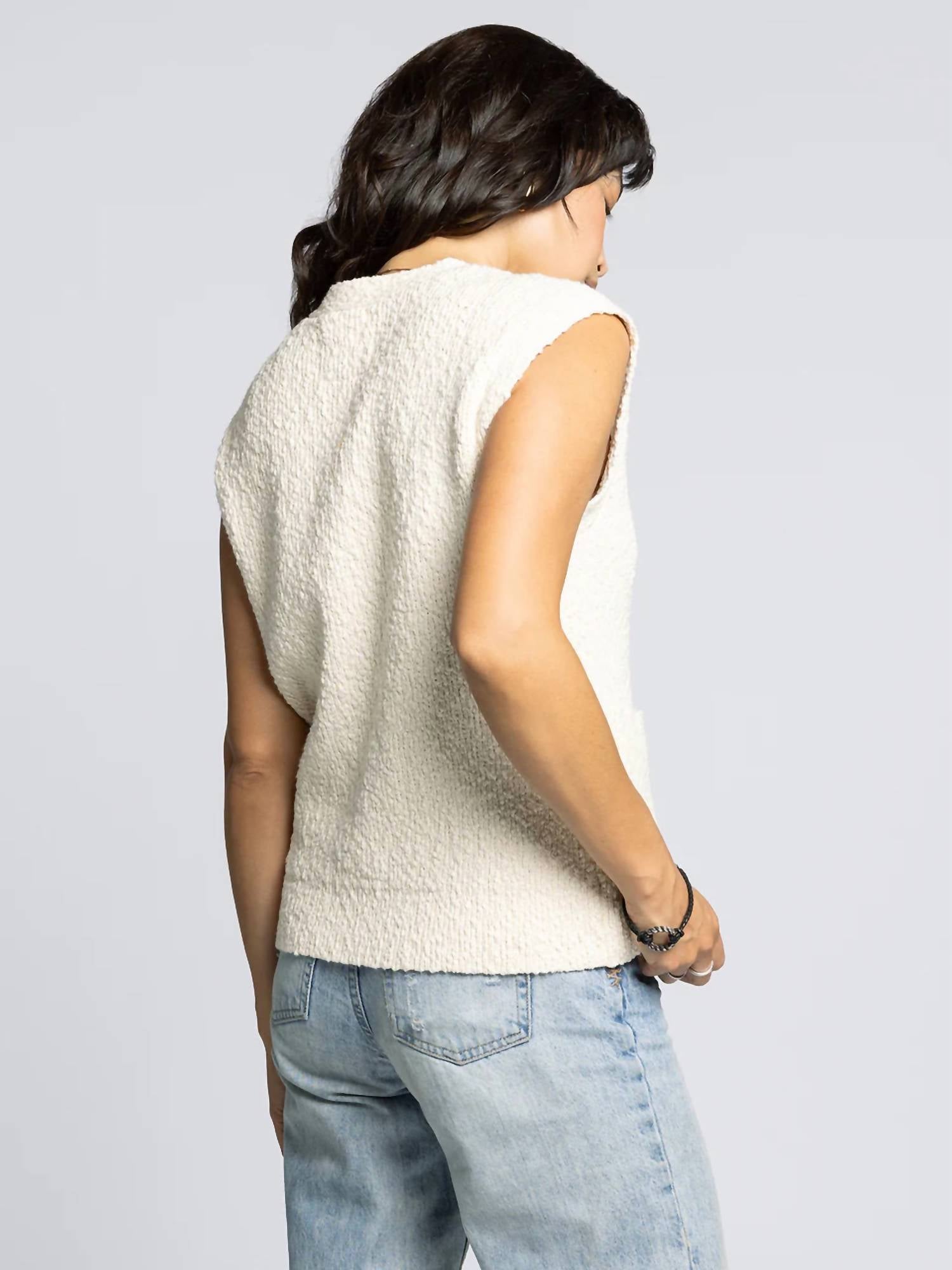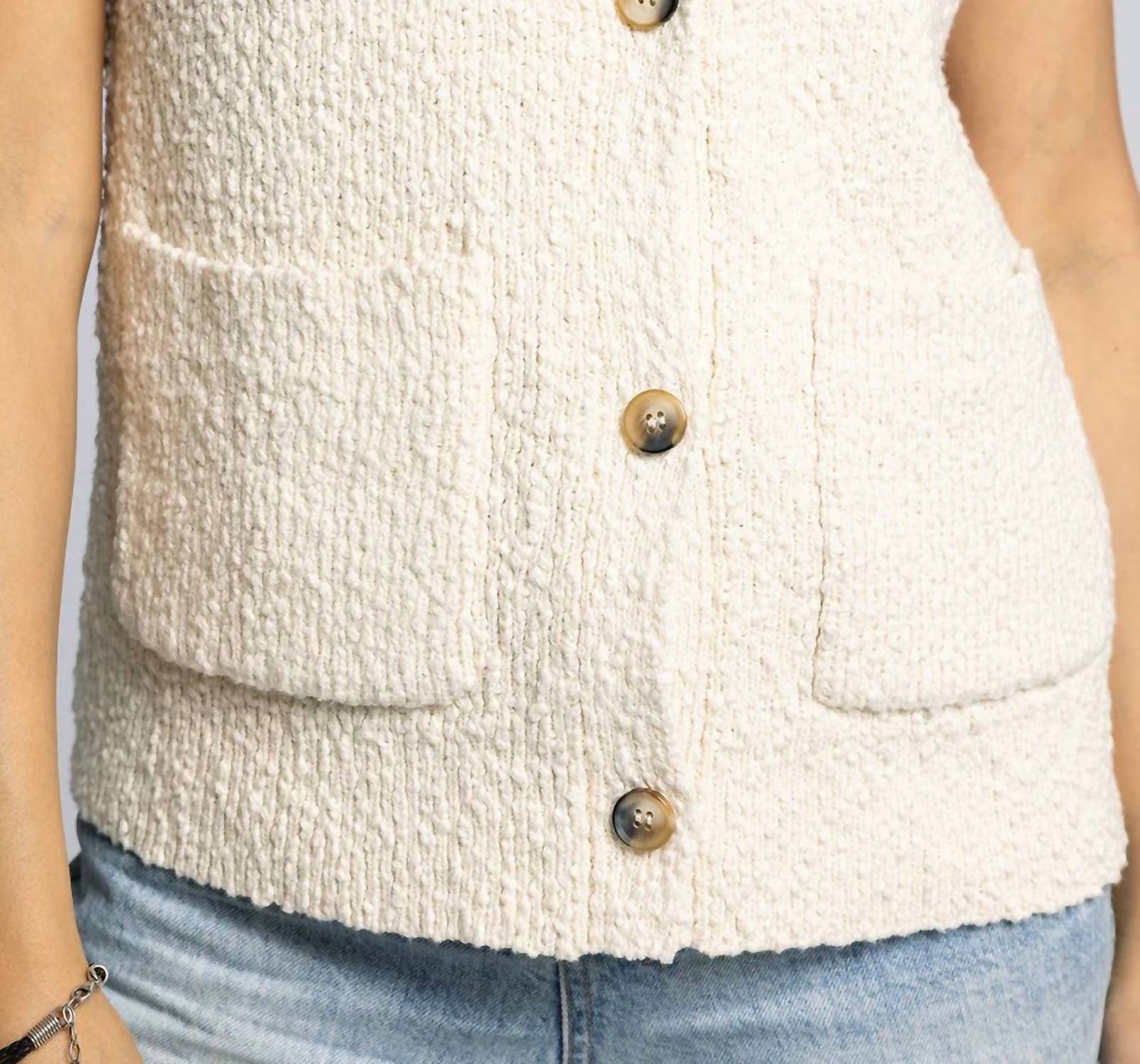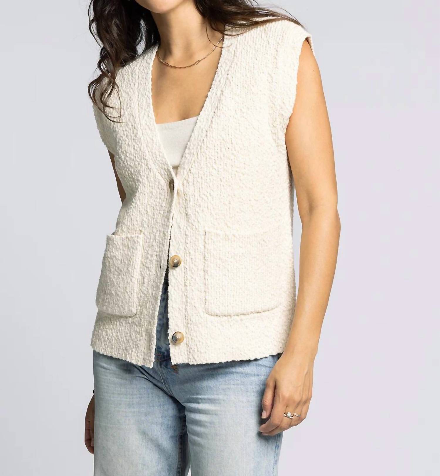 You'll be reaching for this comfy and classic v-neck sweater all season long. Elevate your casual style with the Emma Button Down Cardigan by Thread & Supply, an effortlessly chic addition in antique white. Featuring short capped sleeves and meticulously crafted from 100% cotton slub texture, it offers comfort and relaxed elegance. This cardigan, made as an import, has a full button front closure and convenient dual pockets. Measurements for a size small: Length 23.5", Chest 17", Sweep 17.5". Care: Machine wash cold. Perfect for vacation or any relaxed occasion.