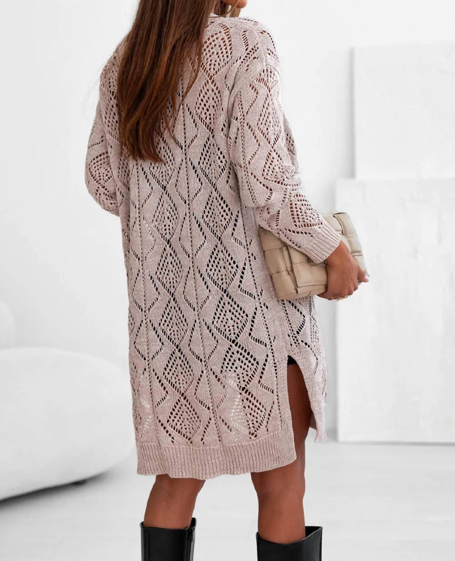 Threaded Pear - Hollow-out Openwork Knit Cardigan