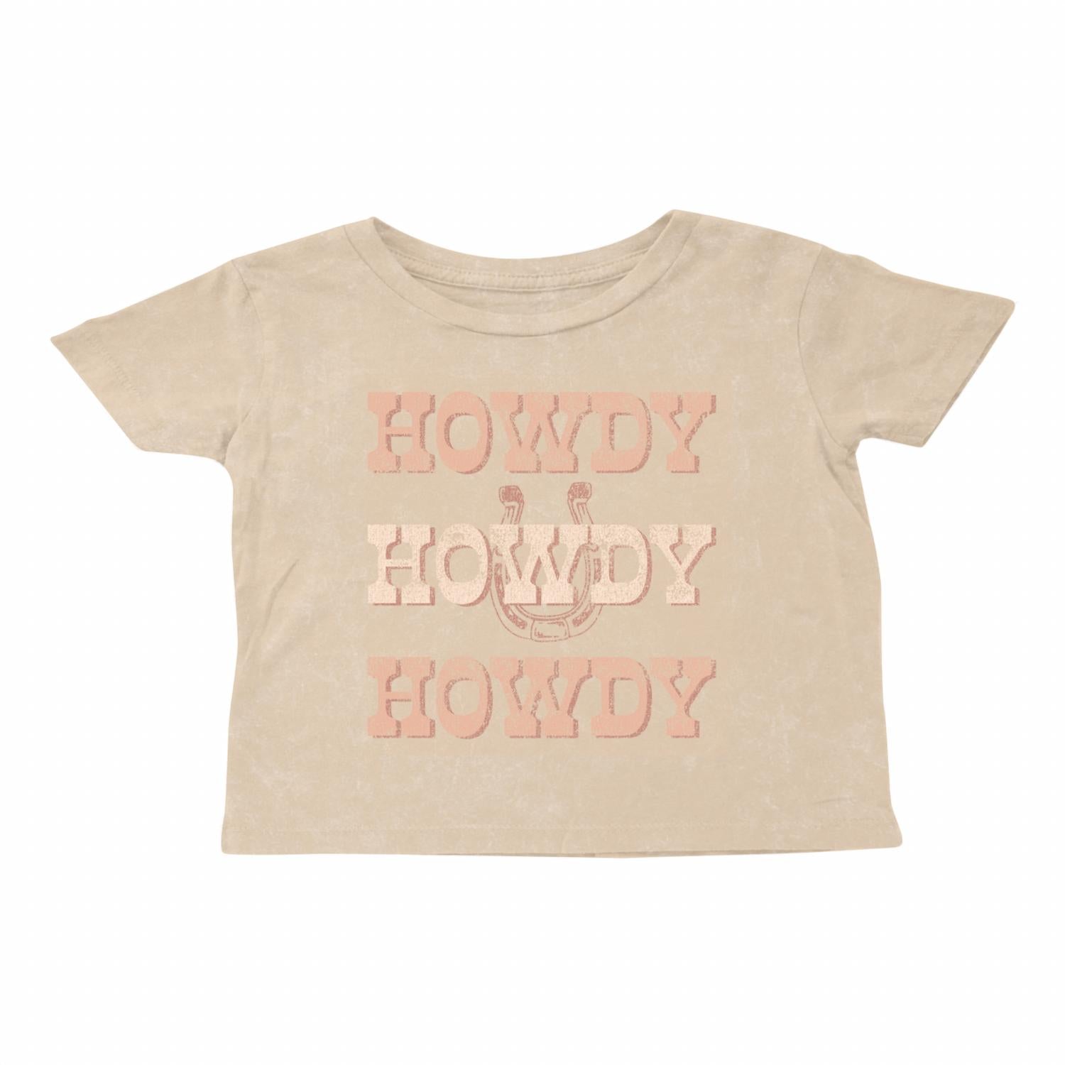 Introducing the Howdy Boxy T-shirt by Tiny Whales, perfect for carefree summer fun with its short sleeves and playful graphic pattern. This beige tee is crafted from 100% cotton jersey, offering both comfort and style. Designed with a cropped, boxy fit that is perfect for girls who love to express themselves. Care instructions: Machine wash recommended.
