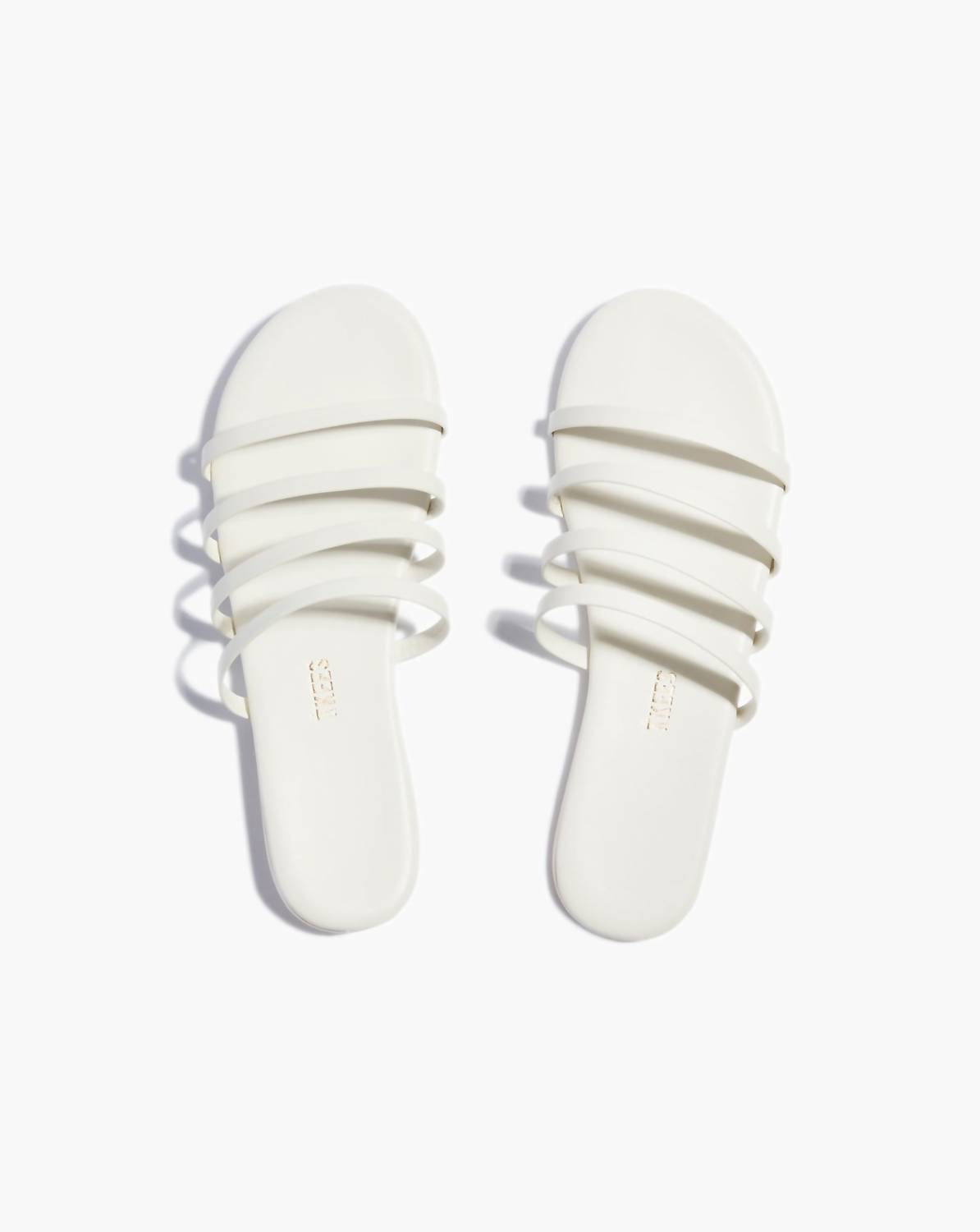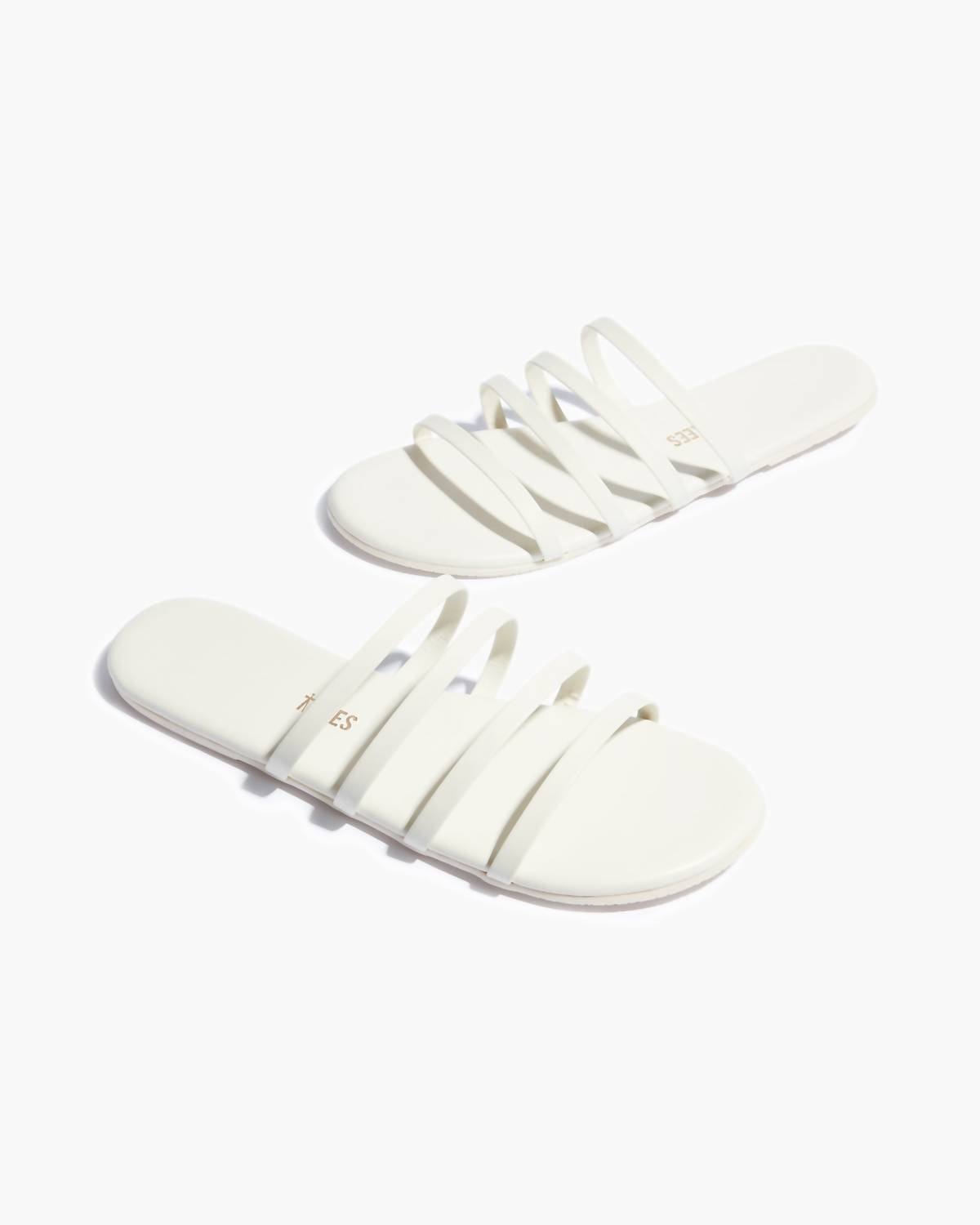Classicly cute and all-day-wearable. We love this sandal. Step into elegance with the Women's Senna Flip Flops by TKEES, crafted from soft Brazilian leather. Featuring an open toe and four spaced-out parallel straps, these cream sandals offer both style and comfort. The flat heel design, coupled with a cushioned leather insole and rubber outsole, ensures a steady and comfortable fit. Made in Brazil, these sandals are perfect for both casual and church occasions, offering a chic addition to any outfit.