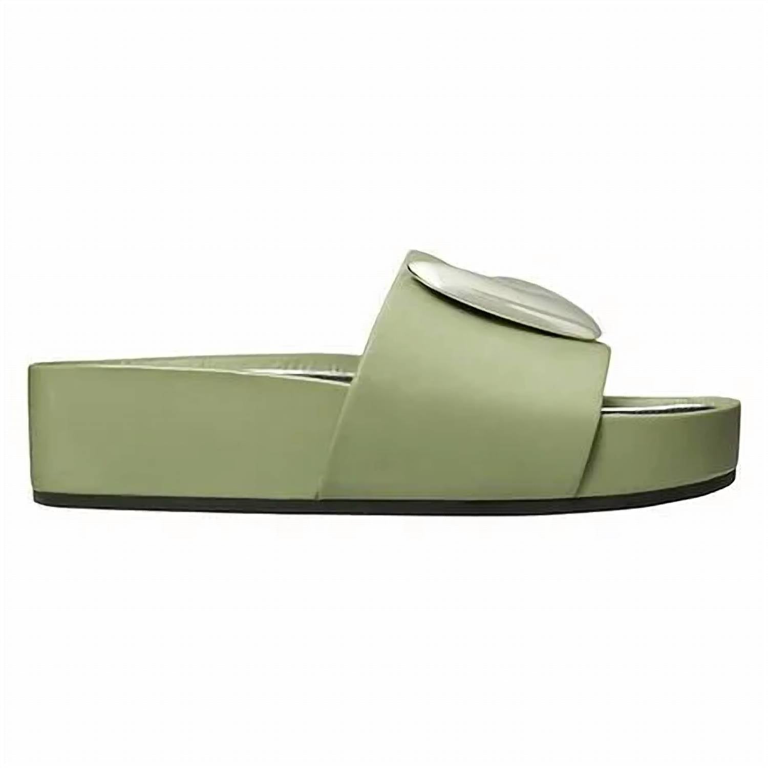 This sandal will take you from brunch to dinner and everything in between. The Patos platform slide elevates an easy slip-on with sculptural metal teardrop plates. Crafted in crinkled patent leather and featuring an ultra-comfortable molded insole, the ergonomic sandal adds lift and support into the warm-weather wardrobe. Approximately 1.97" (50mm) platform Crinkled patent leather upper Metal teardrop plates Molded leather footbed; mirrored metallic polyurethane border Napa leather lining Rubber sole Dust bag included Platform Sandals Style Number 168871