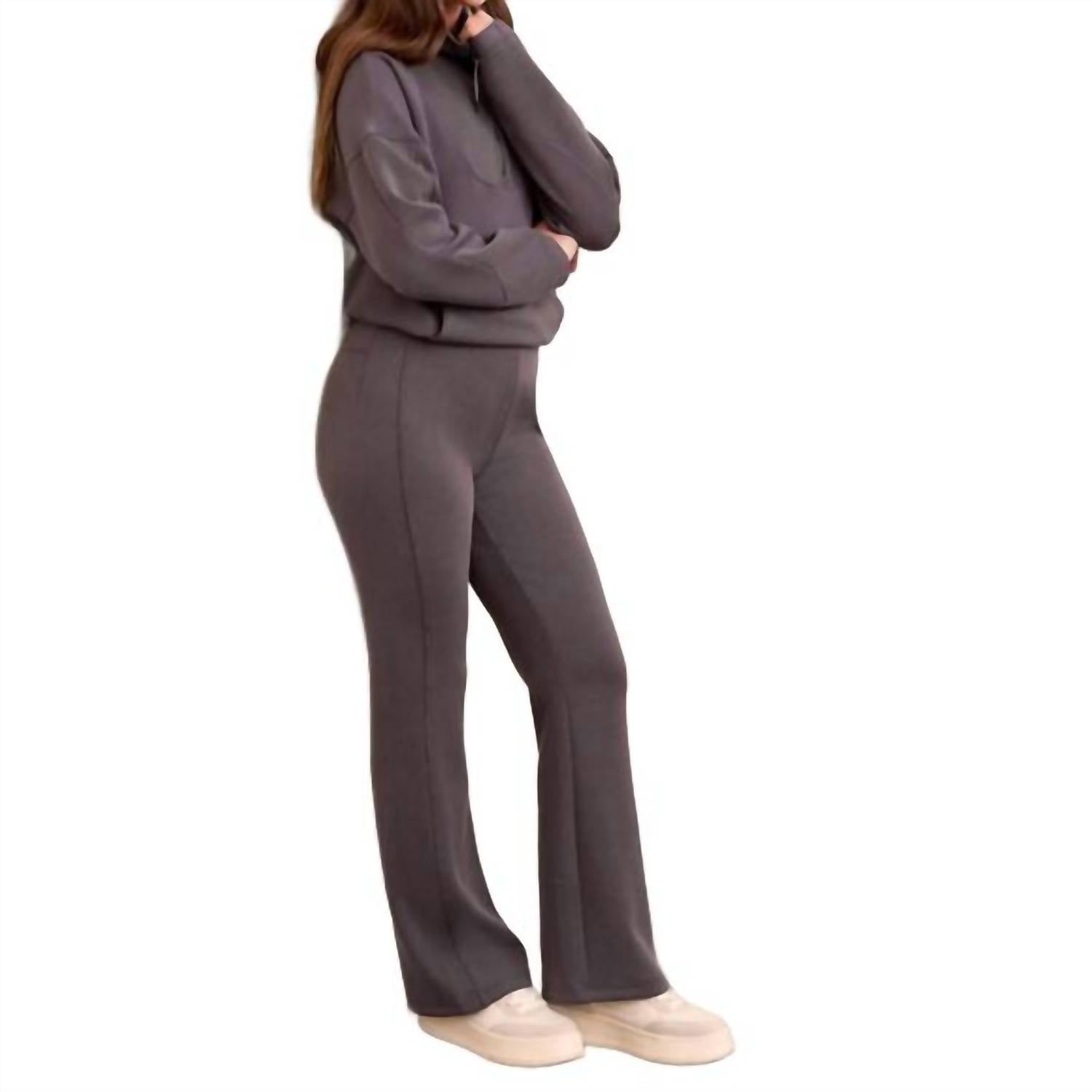 Stay on trend with these stylish boot cut pants that are fit to perfection. The perfect combination of comfort and fashion, you'll be grabbing for these all season long! Enhance your wardrobe with TRIBAL's Techno Lux Rib Pull On Flare Leg Pants in a sophisticated charcoal hue. These women's pants feature a high-rise, regular fit with a stylish flared leg, perfect for streetwear or a holiday party. Composition: 59% Polyester, 35% Modal, and 6% Spandex. Closure: Pull on. Care: Machine wash and tumble dry. Inseam: 30 inches.