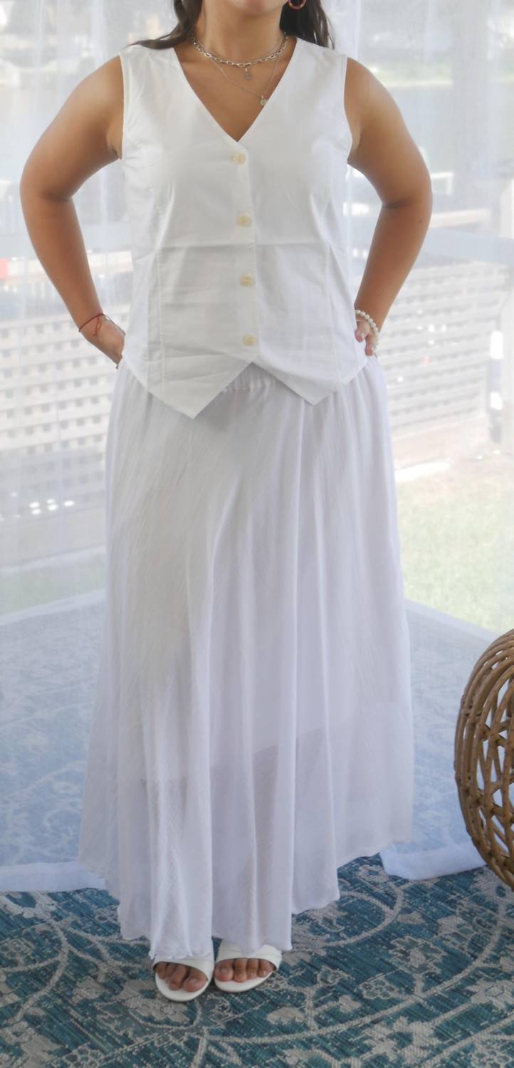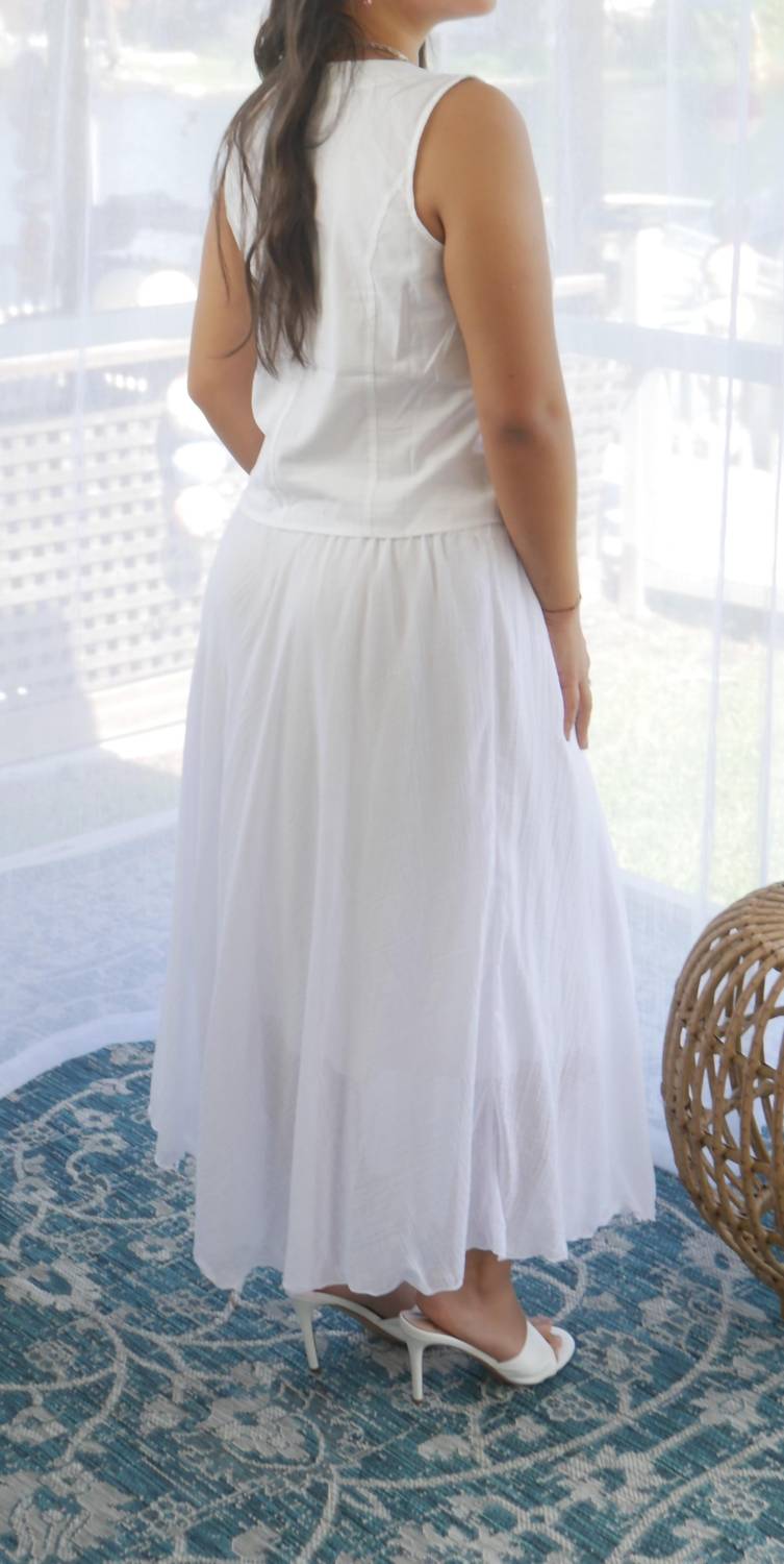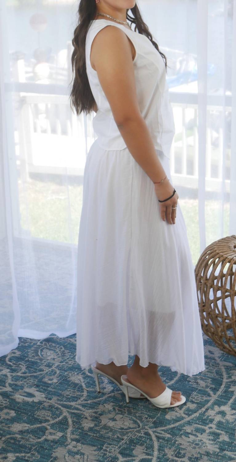 Discover the serene elegance of the Flowing Angel Skirt by Trove, perfect for church or any summer occasion. This women's white A-line or full skirt features a solid pattern that gracefully complements any ensemble. With its ethereal flow and timeless design, this skirt is a versatile addition to your wardrobe essentials. Please note that specific care instructions are not provided.