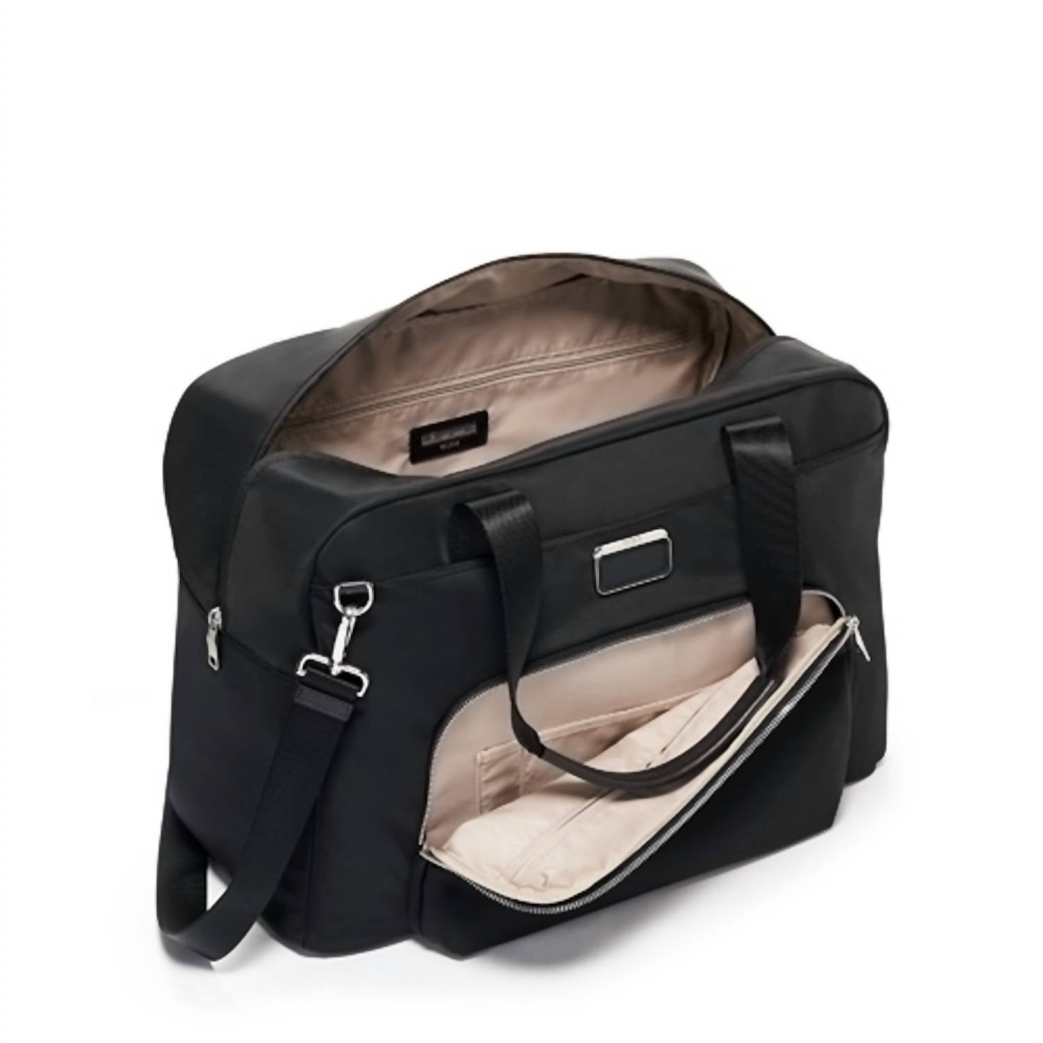 The Unisex Duffel Bag by Tumi combines sleek design and functionality in classic black. This spacious duffel measures 8.25 inches in height, 17 inches in width, and 12 inches in depth, providing ample room for all your essentials. It's perfect for both travel and daily use, reflecting Tumi's commitment to quality and style. Originating from a trusted name in luggage, this bag ensures durability and sophistication.