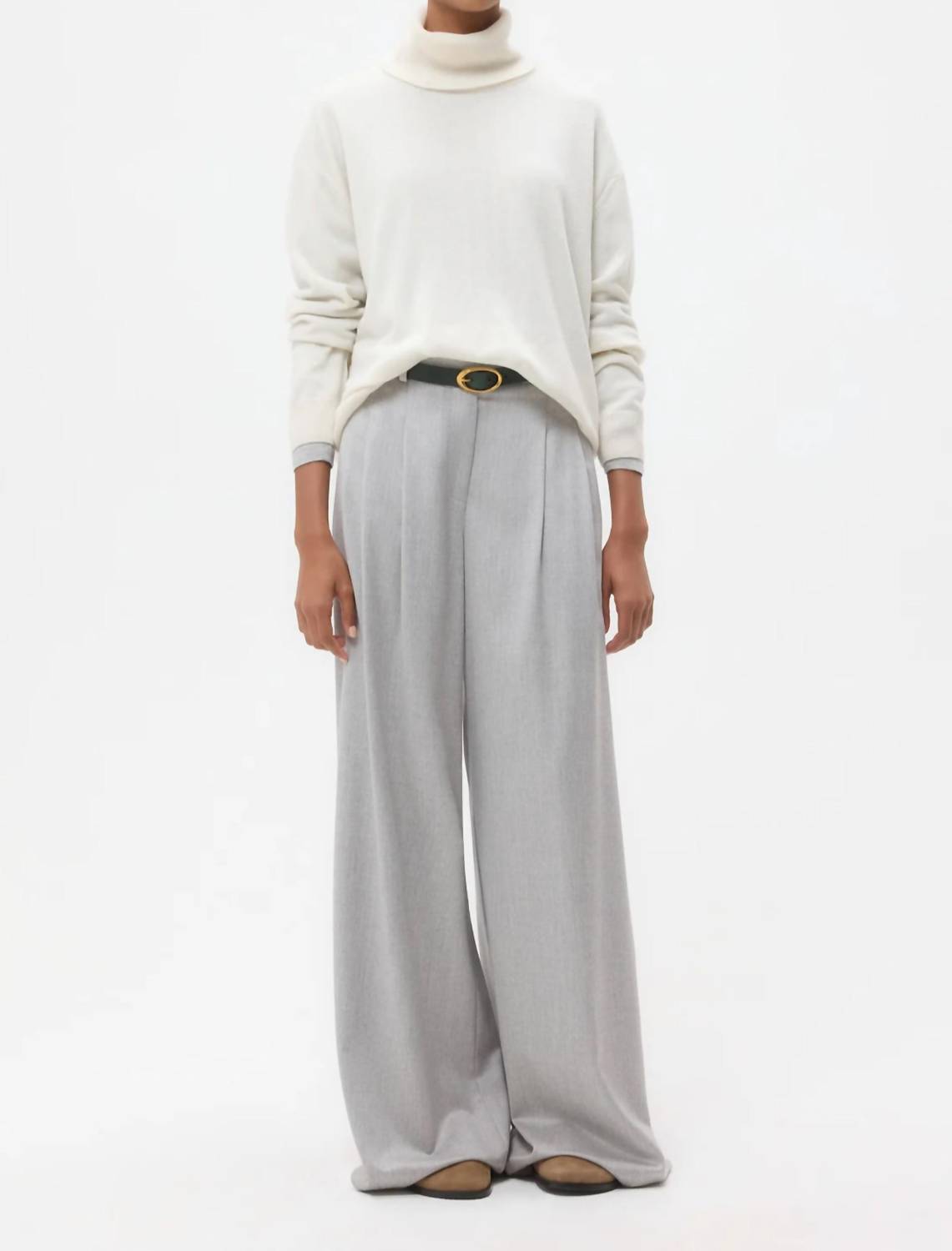 Introducing the Avery Trousers by TWP, crafted from a premium wool blend with a hint of stretch for ultimate comfort. These grey trousers feature a flattering mid-rise that sits high on the hip, wide legs for a modern look, and a full-length cut. Designed with practical side seam pockets, a single back welt pocket, and a hidden hook/zip fly with belt loops for a polished finish. Material composition includes cotton, virgin wool, nylon, and polyamide, and these trousers are ideal for travel, requiring dry clean care for longevity.