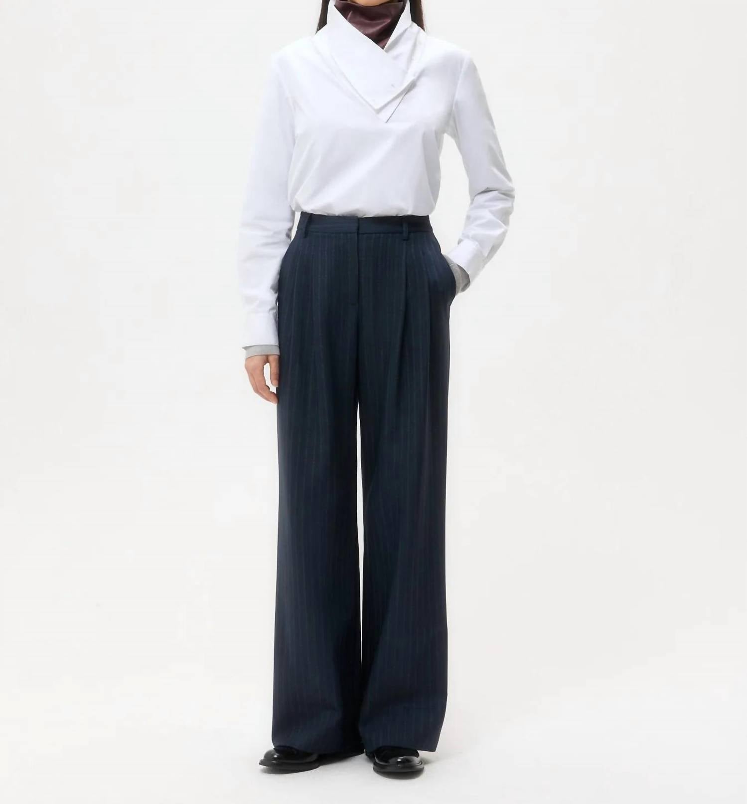 Elevate your workwear wardrobe with the TWP Sulli Pant, designed in a striking Insignia Blue. These high-rise, wide-leg trousers offer a relaxed fit, perfect for a comfortable yet sophisticated look. Crafted from a stretch wool blend of 98% wool and 2% elastane, they feature front pleats, belt loops, side pockets, and a concealed zip-fly with a hook-and-eye closure for a seamless finish. Ideal for the fall season, these textured pants are a versatile choice for both professional and special occasions.