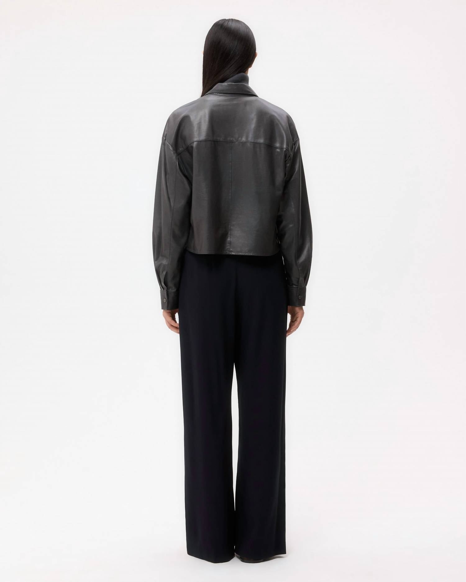 Soft leather, impeccable design. This leather jacket is a win-win. Discover effortless sophistication with the Little Big Joe Leather Jacket by TWP, a timeless piece designed in a classic black shade known as Urban Chic. This long sleeve jacket is expertly crafted from 100% lamb leather, offering an ultra-soft texture and premium finish. Featuring a snap closure and a versatile collar neckline, it complements any wardrobe with its sleek silhouette.