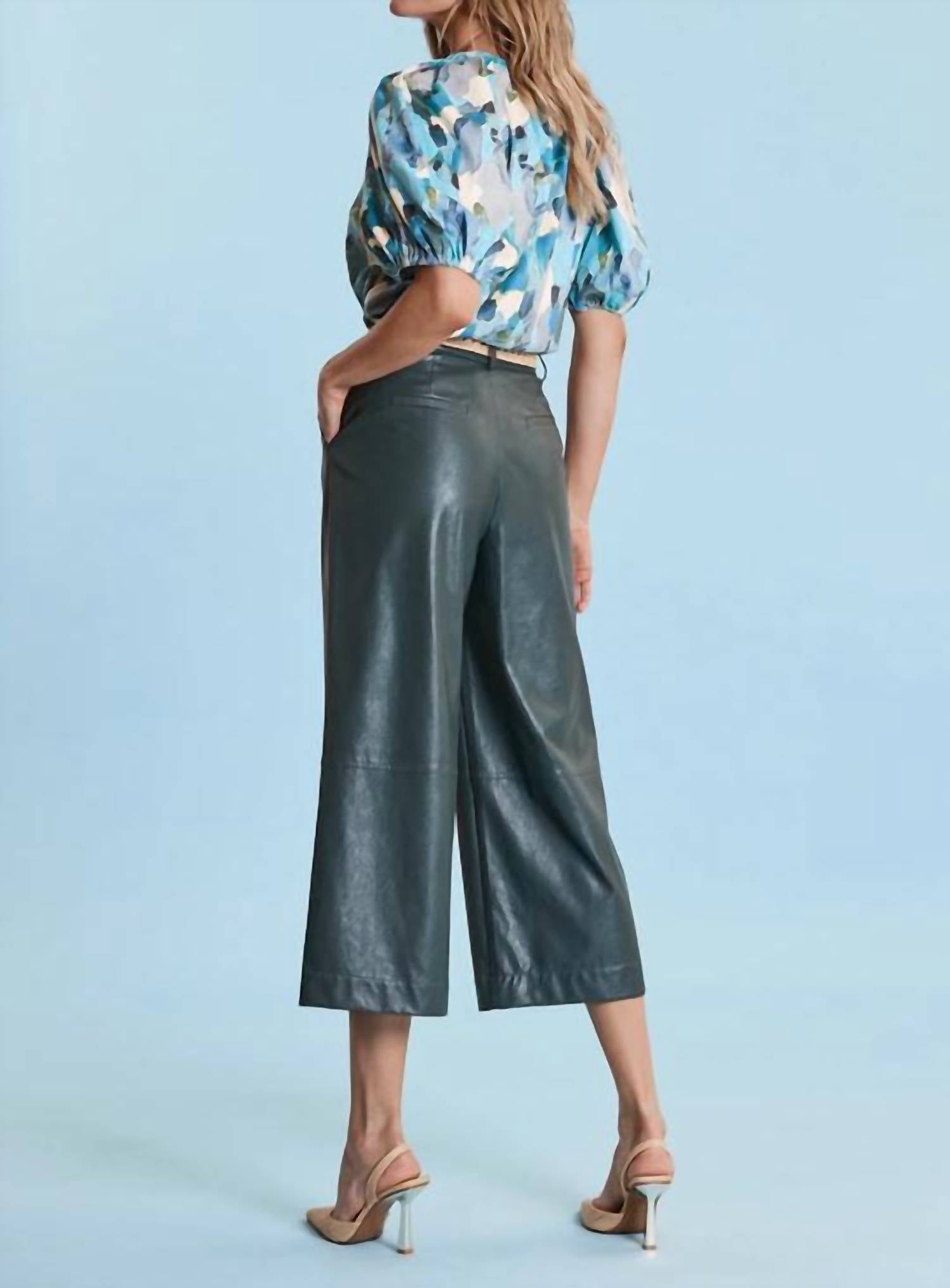 Enhance your wardrobe with this trendy cropped number, designed to blend style and practicality. The comfortable fit allows for easy all-day wear. The perfect length to pair with your favorite mules. Elevate your style with the Rebecca Pleather Crop Pants by Tyler Boe, a chic choice in Brunswick that harmonizes luxury and comfort. These women's pants feature a high-rise, wide-leg design with an ultra-relaxed fit and an inseam of 24.75 inches, finished in vegan leather for a sophisticated look. Crafted from a shell of 100% Viscose with a polyurethane coating, and lined with 100% Polyester, these pants offer slash pockets, a welt pocket at the back, and a secure zip closure. Machine wash, do not dry clean.