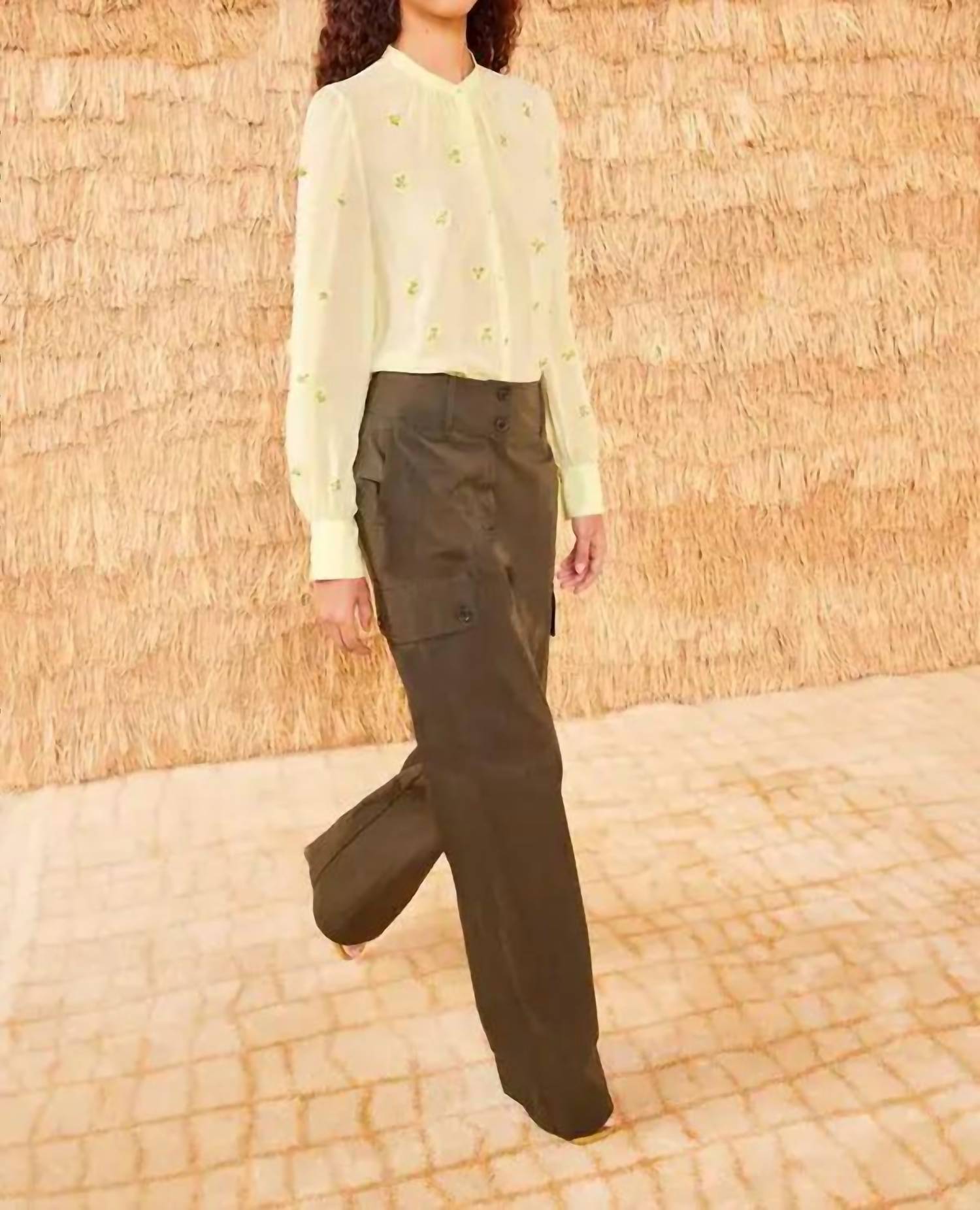 A versatile blouse that works from desk to dinner! Introducing the Bea Silk Blouse by Ulla Johnson, an exquisite piece in striking Citron crafted entirely from luxurious silk chiffon. This blouse features long, lightly billowing sleeves and a collarless neckline with delicate gathering, accentuated by hand-embroidered floral sequins for a distinct maximalist appeal. The tonal button-up closure adds a seamless finish, making it an ideal choice for vacation wear. Care: Dry clean only.